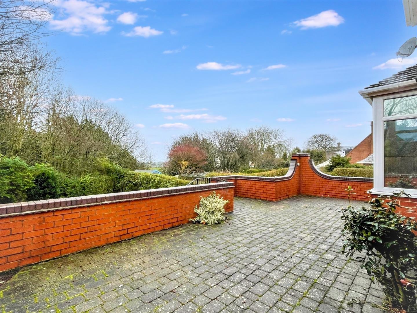 - Garage with electric door, large rear patio, lawned garden and useful under-patio storage