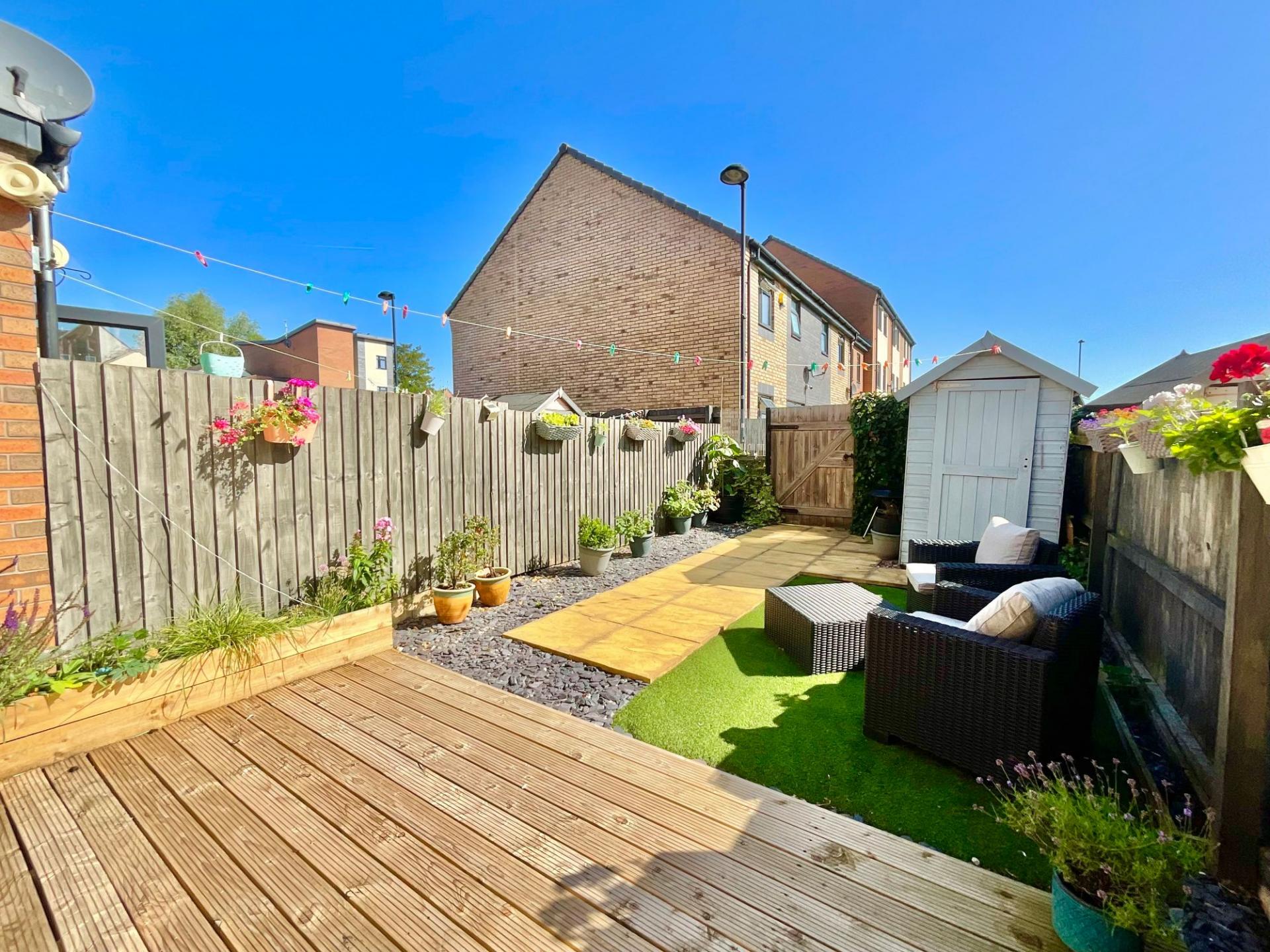 - Lush rear garden with patio, decked and artificial lawn areas, calling for summer BBQs, relaxing with friends and family, or sitting with a morning cuppa.