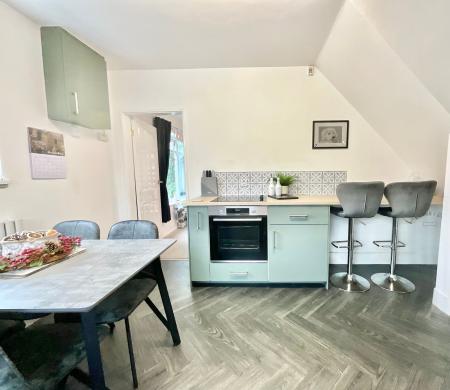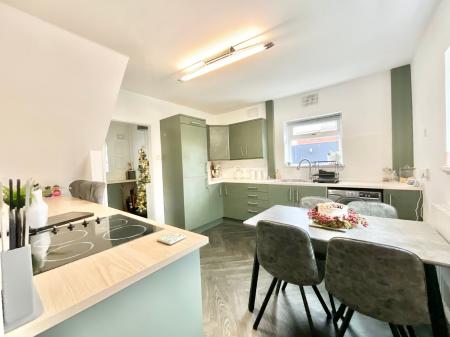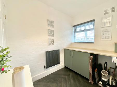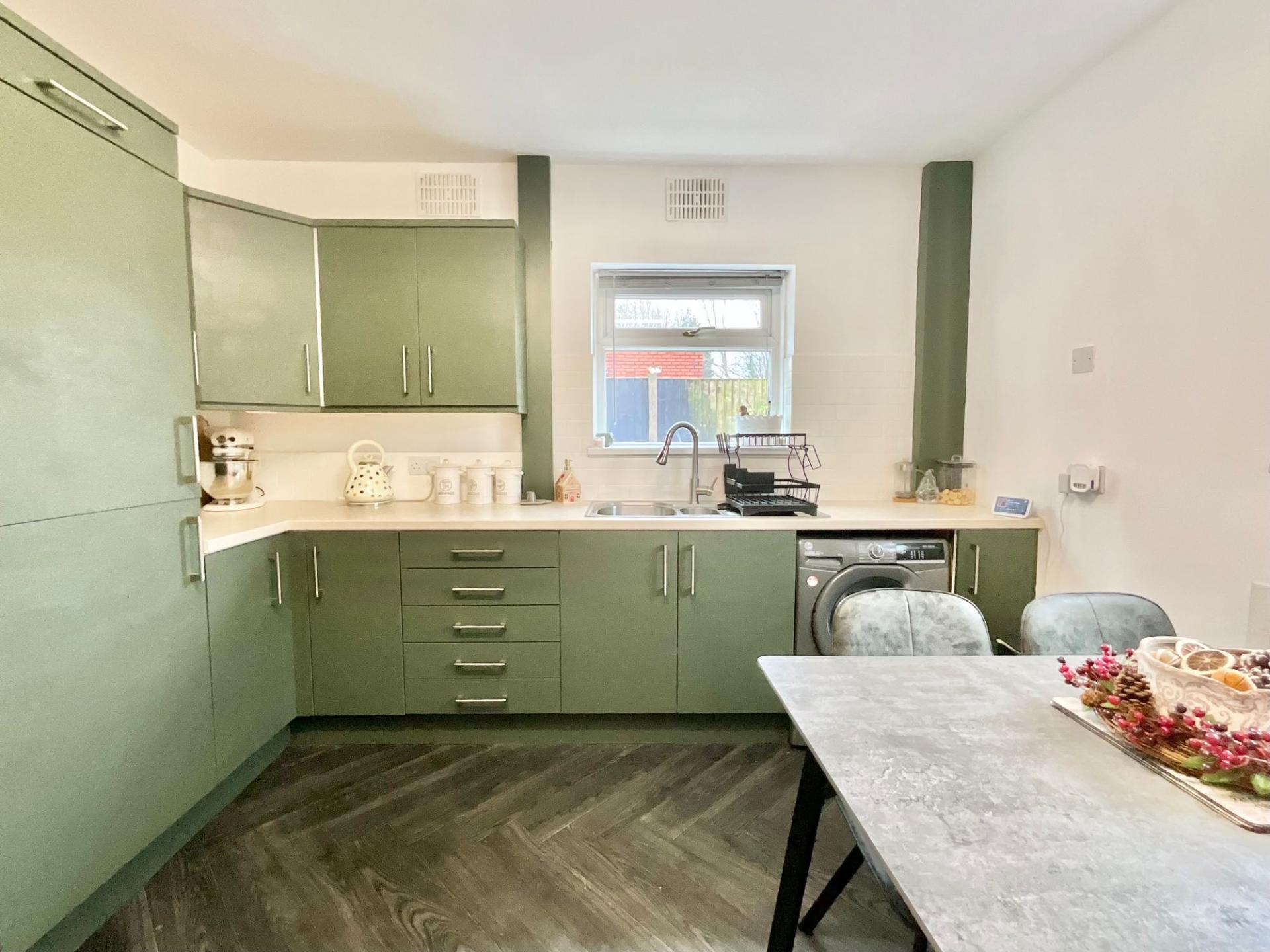 - The kitchen and Utility sports calming matte sage green cabinetry finished with wood-effect worktops and a breakfast bar, there’s also ample space for a large dining table too.