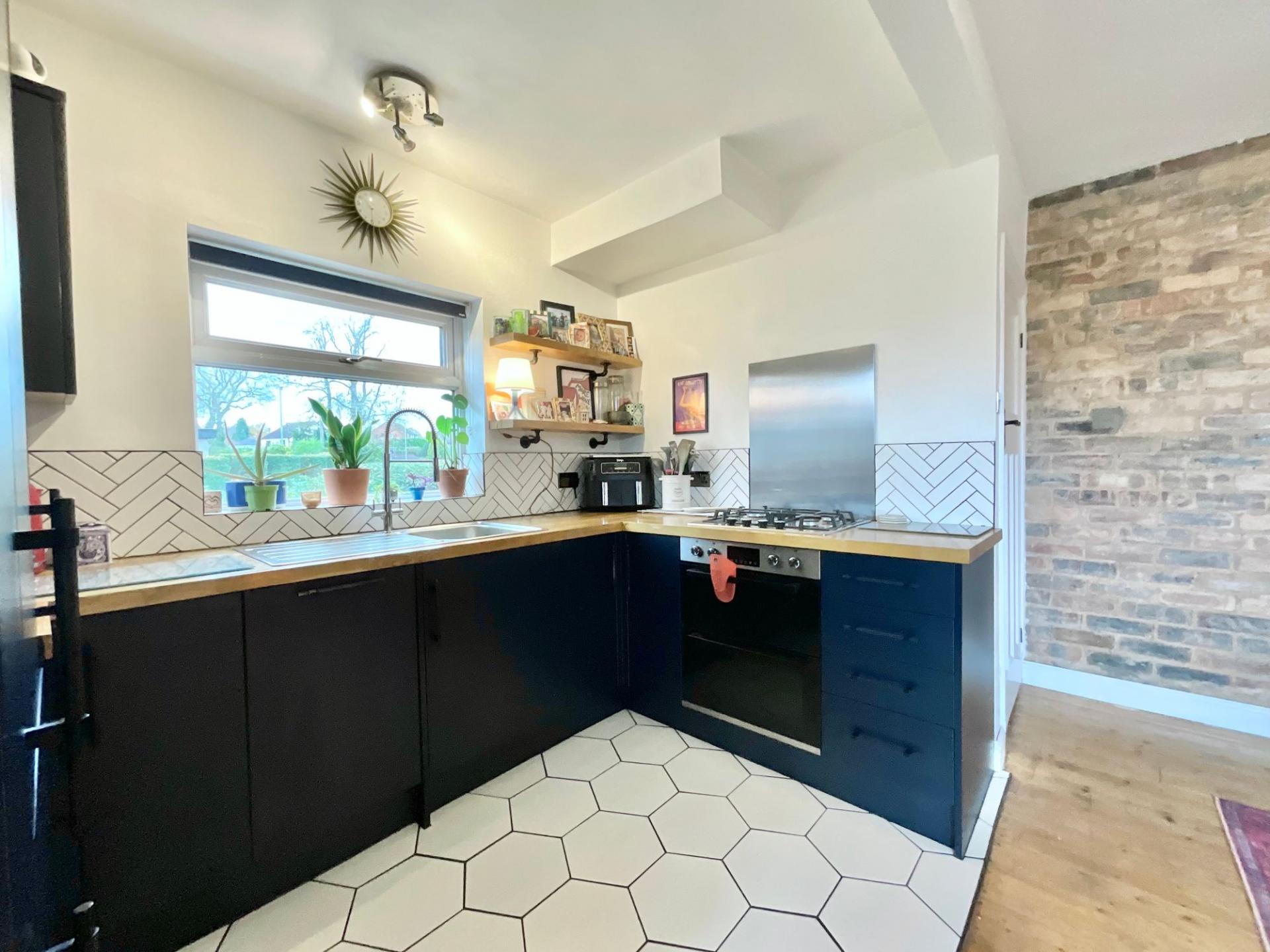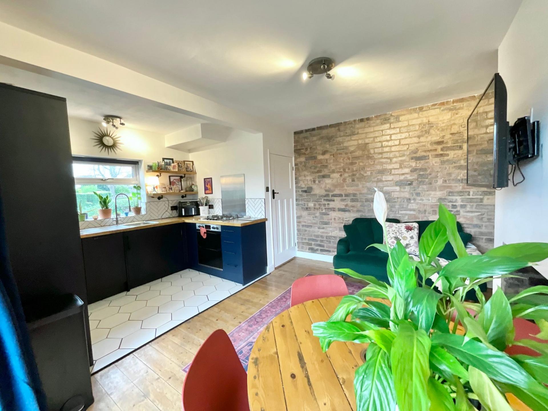- Beautiful layout with modern dining kitchen having sliding glass doors and log burning stove with cosy living room to the front.