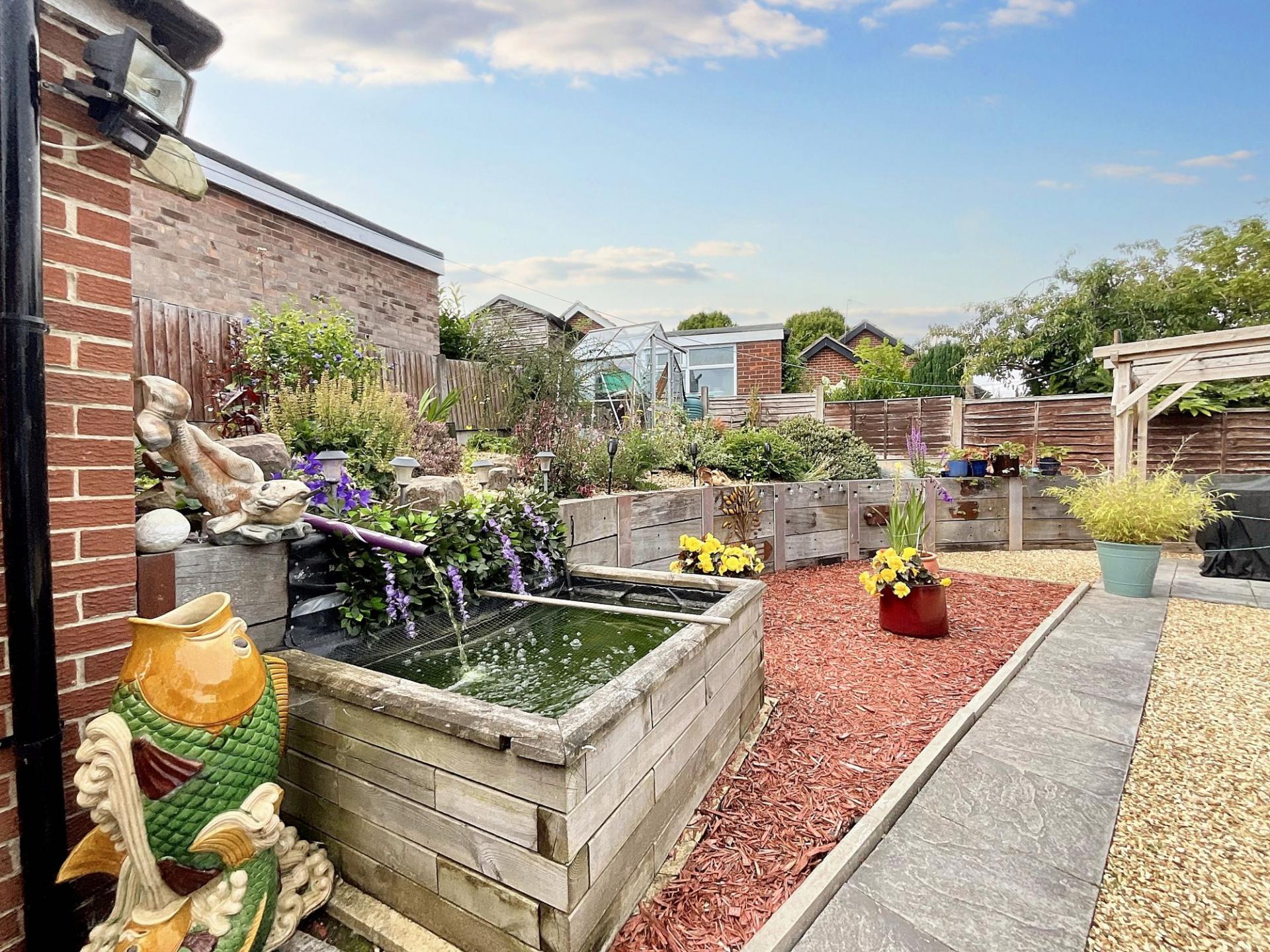 - Landscaped rear garden with patio seating spaces and space for gardening. To the front, a well-maintained garden, generous tandem driveway with off-road parking, and a single garage.