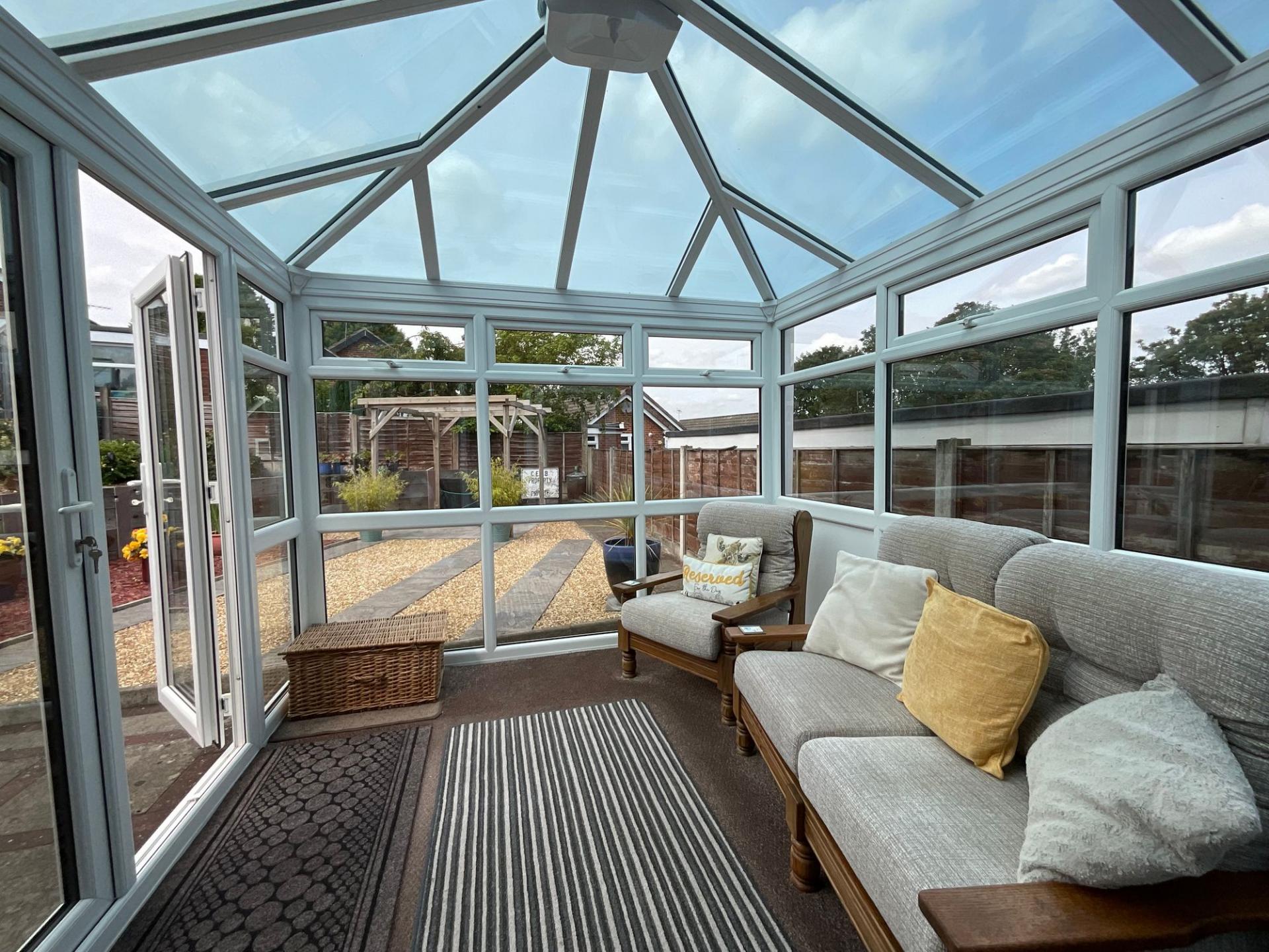 - Two generously sized double bedrooms, perfect for hosting guests, a home office, dressing room, or hobby room. Bright conservatory for soaking up the sun and a bathroom with a bath, and a shower.