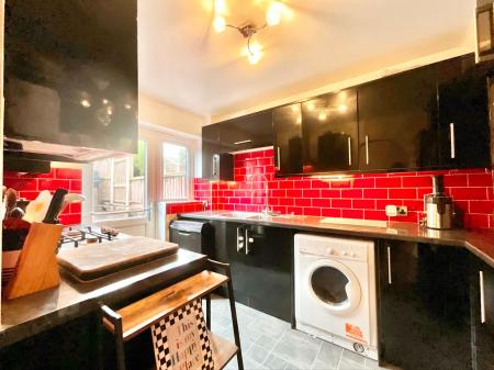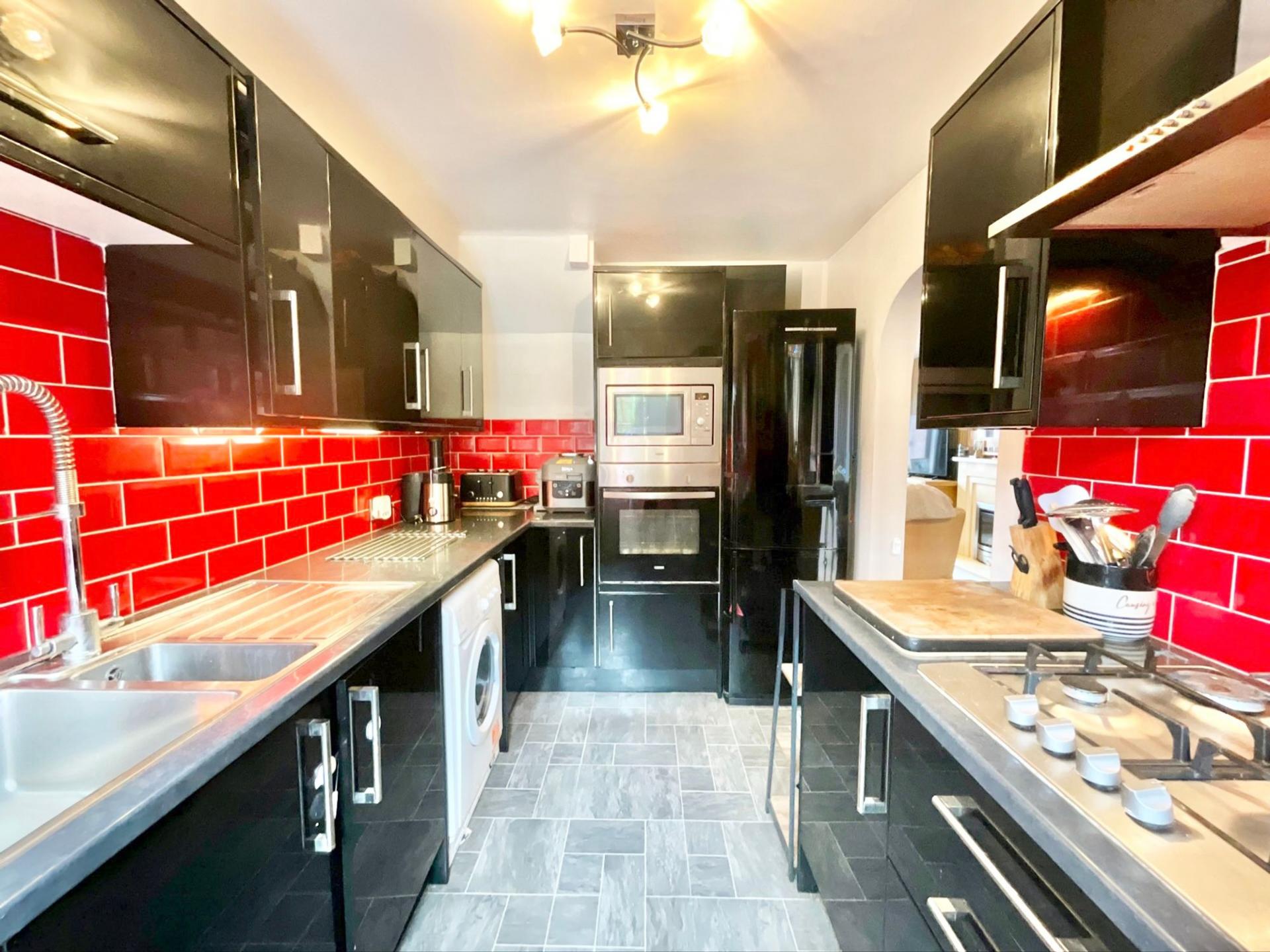 - A Kitchen That Pops. Sleek black cabinets, bold red tiles and stone-effect worktops create a show-stopping space worthy of centre stage.