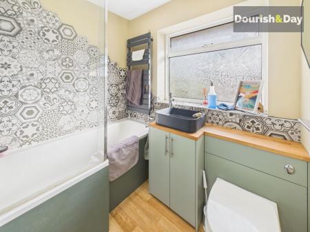 Upstairs, you'll find three well-proportioned bedrooms—whether you need space for family, guests, or a dedicated home office, there's room for everyone. The modern bathroom features a stylish P-shaped shower bath, sleek vanity basin, and WC, making your morning routine a little more enjoyable.