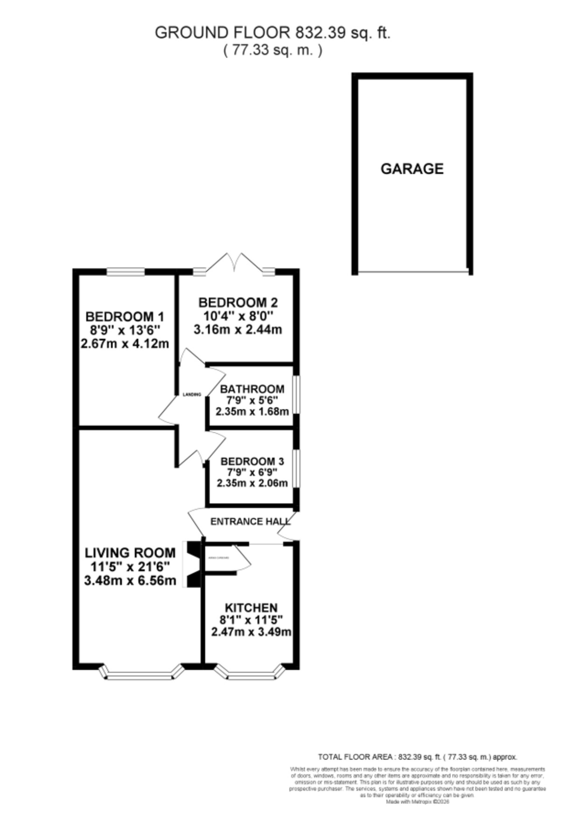 - Parking and storage – Tandem tarmac driveway providing off-road parking for multiple vehicles, plus a single garage.