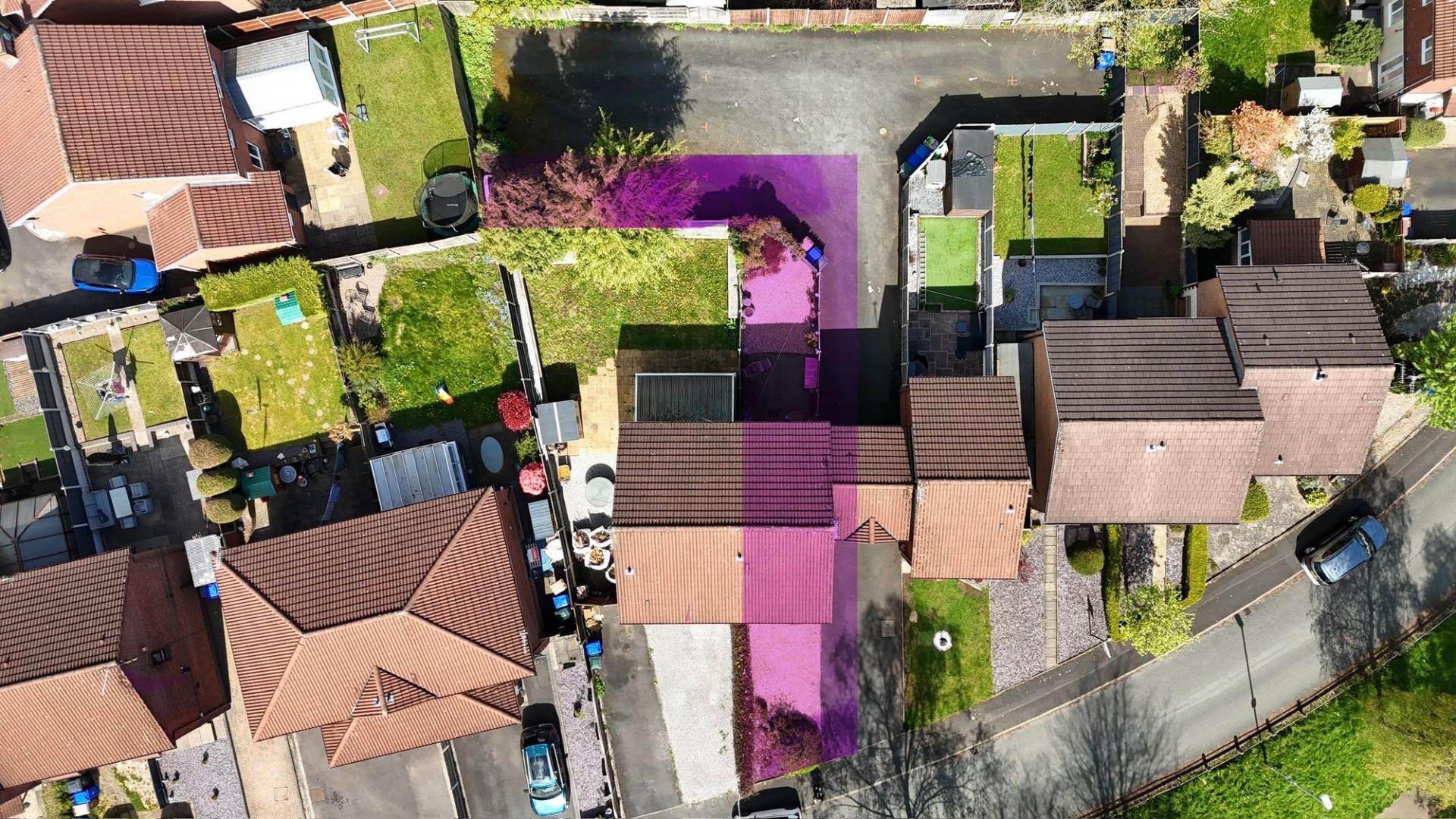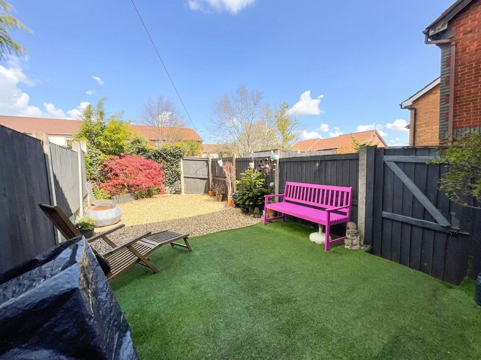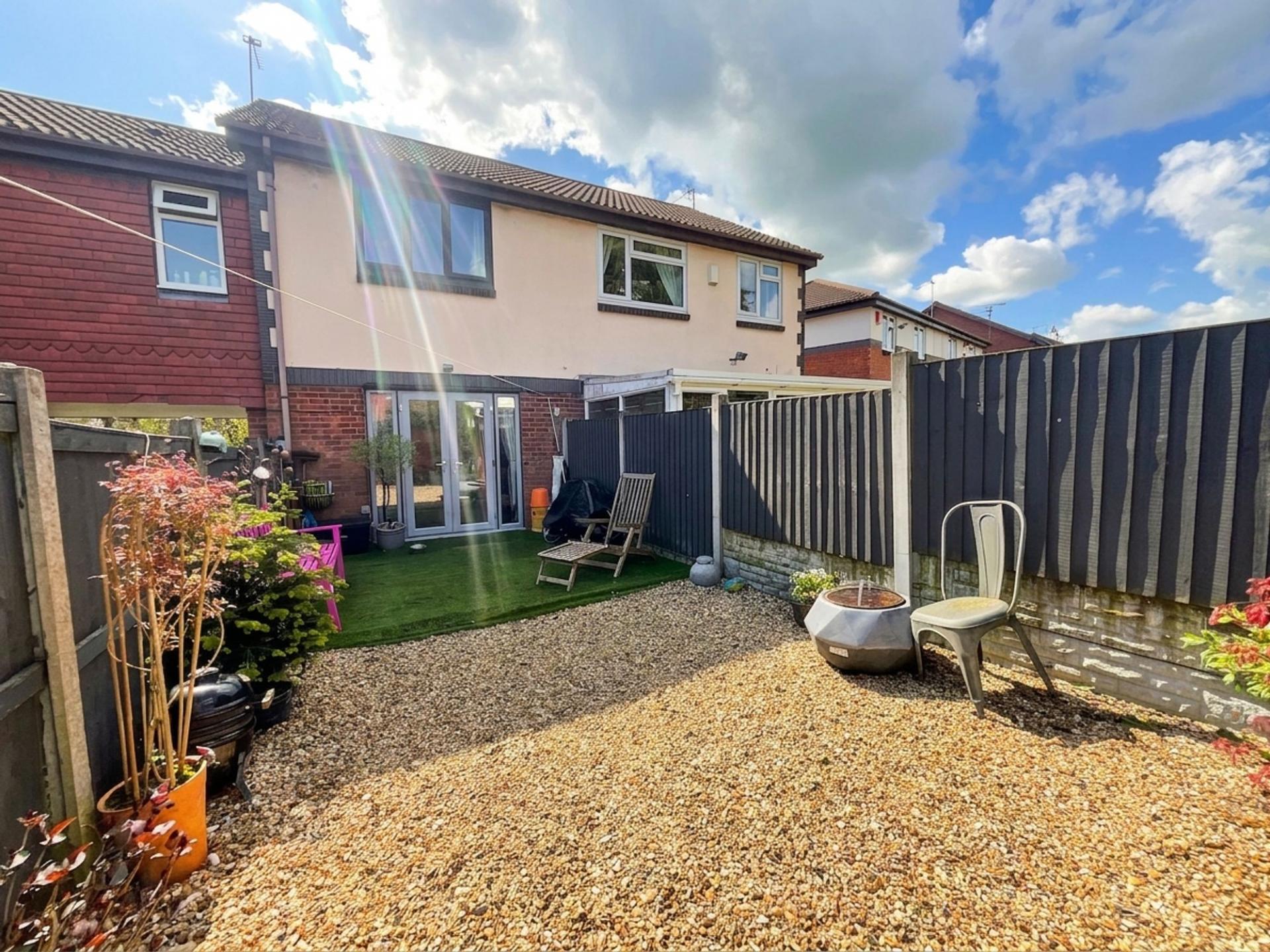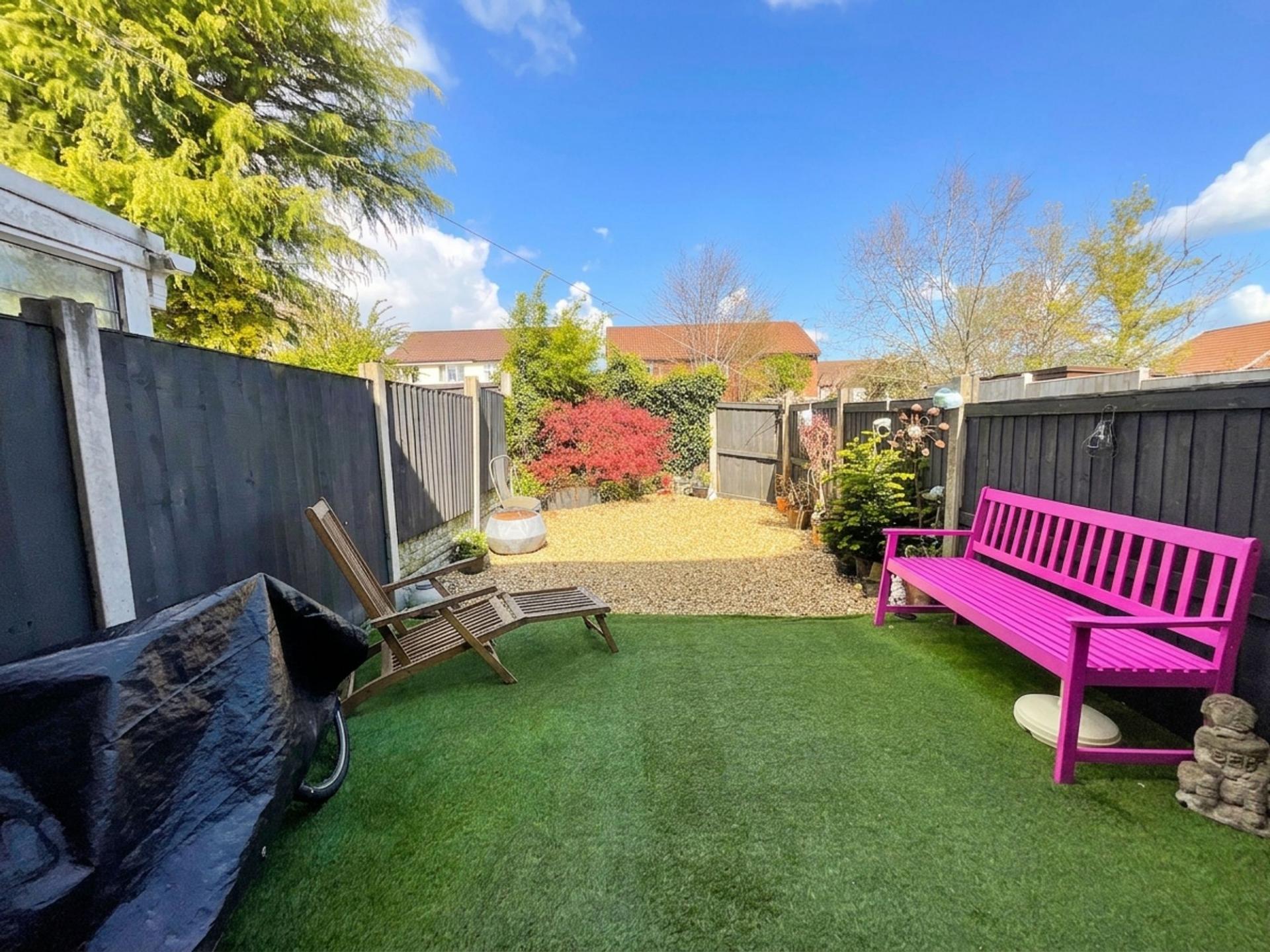 - Garden with low-maintenance artificial lawn and pebbled seating area. Rear secure parking for two cars; front pebbled driveway for easy access.
