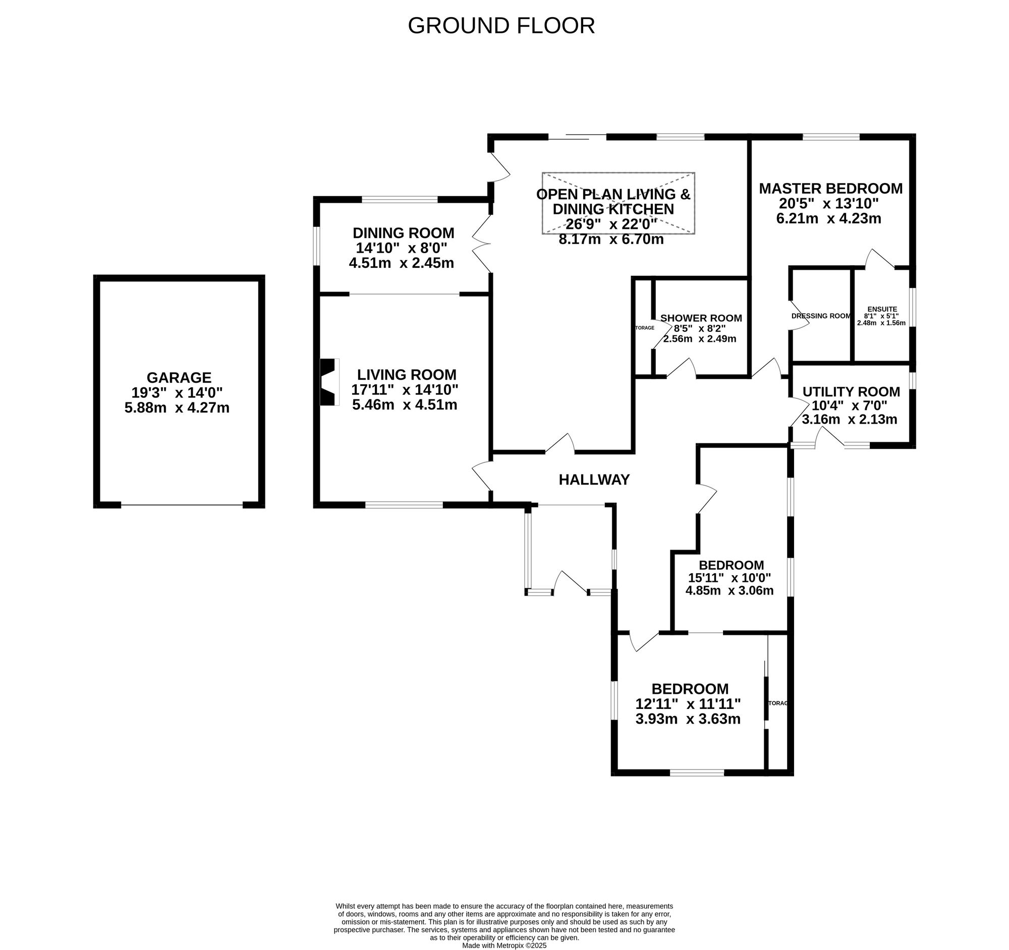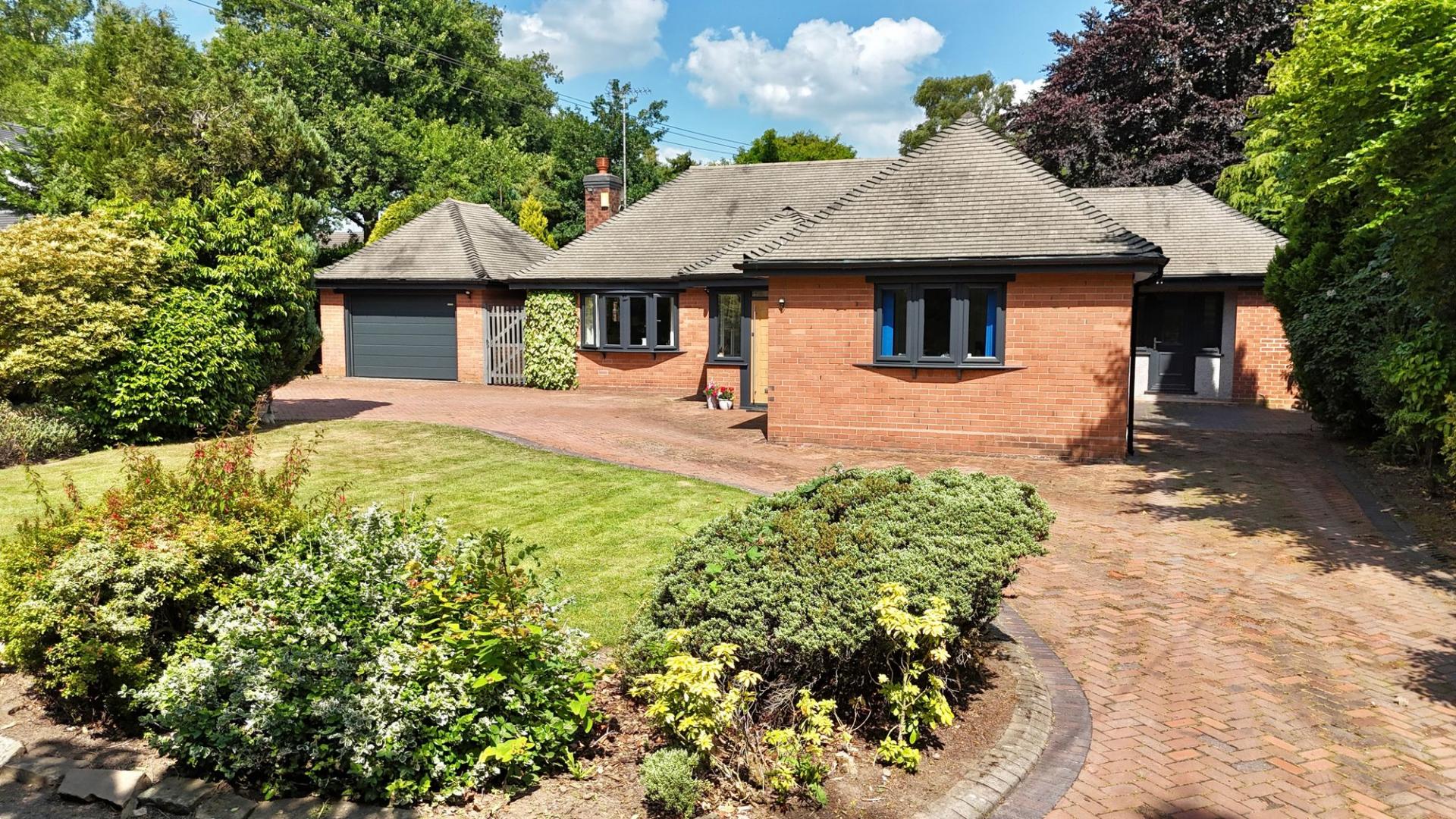 - Landscaped garden with mature trees and vibrant borders. A detached garage, ample driveway, side access, and a well-equipped utility room add everyday ease to this home’s quiet sophistication.