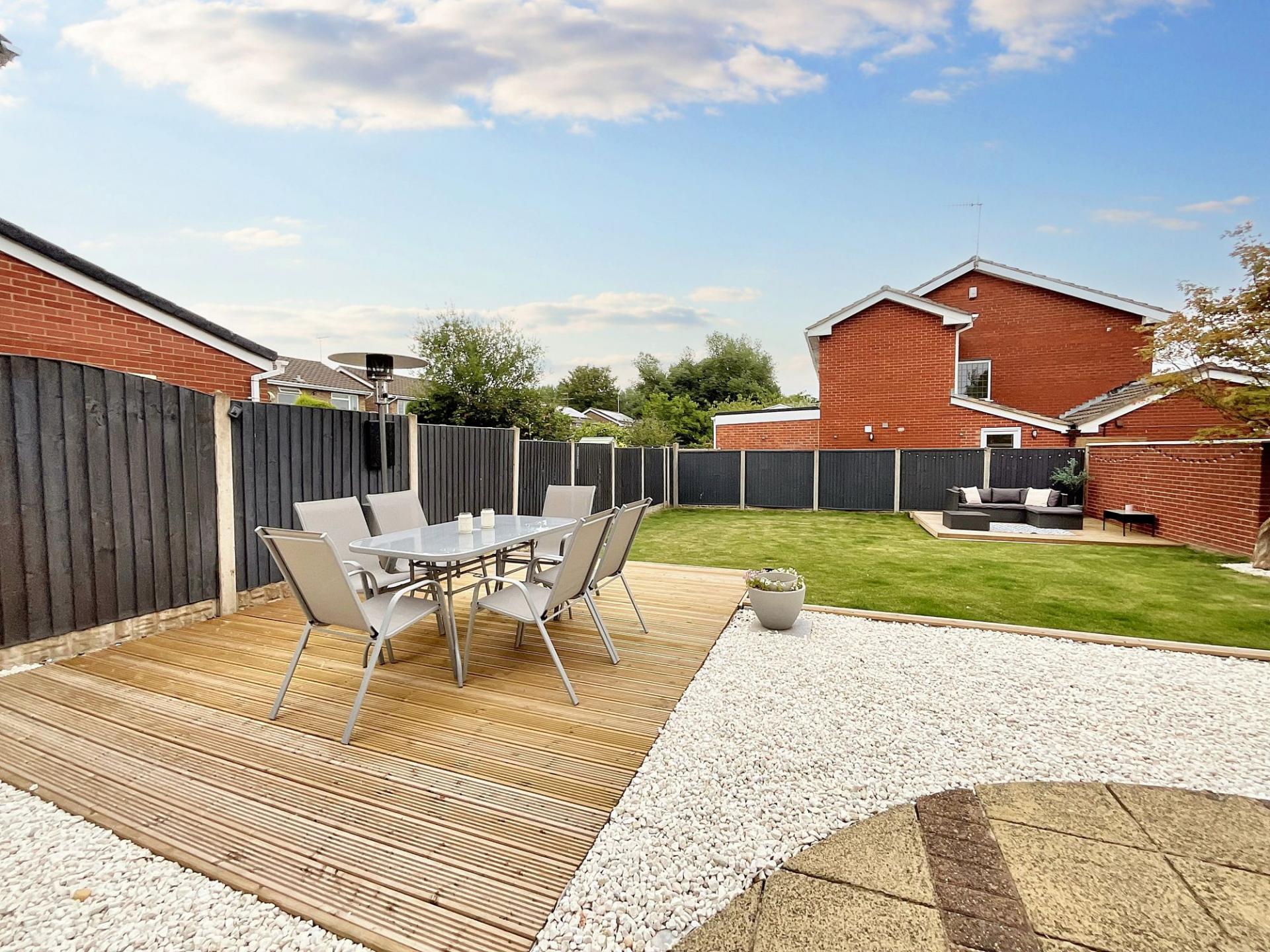 - Beautifully-landscaped rear garden with lush grass lawns and both decked and patio seating spaces that are calling for summer BBQs, soaking up the sun, or relaxing Sunday afternoons.