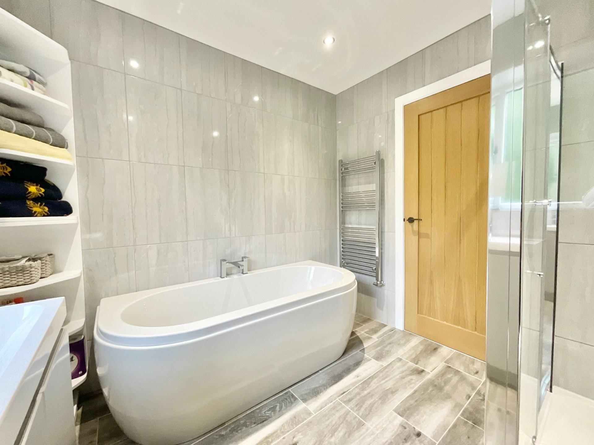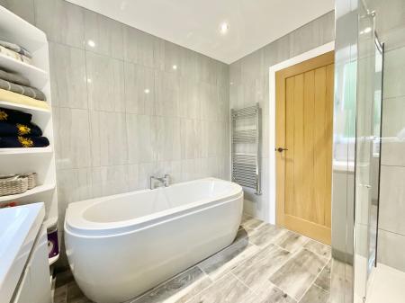 - Generous master bedroom with dual-aspect windows and its own shower room, two further double bedrooms, a single bedroom, and sleek family bathroom with a freestanding double-ended bath and a showe...