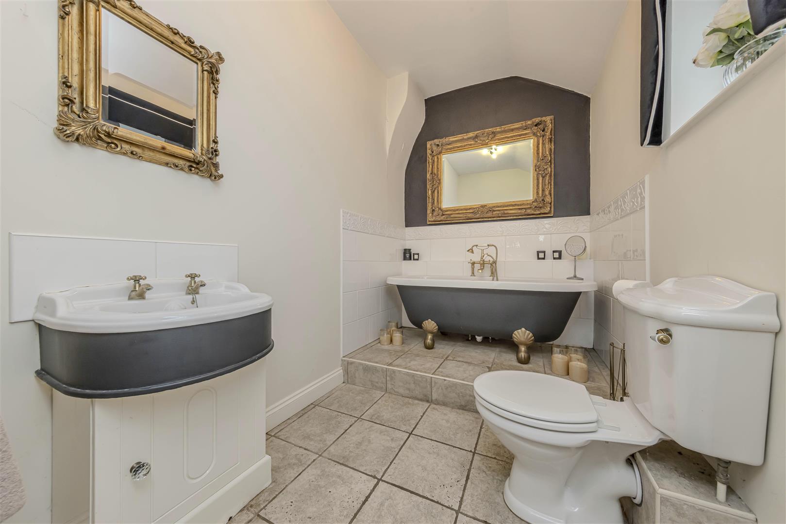 Bathroom - 2.98 x 1.82 (9'9" x 5'11" ) - Tiled flooring. Low-level WC. Wash handbasin with storage underneath. Wall mounted radiator. Freestanding roll top bath with shower attachment. Obscured wooden window to the side aspect. Extractor fan. Ceiling light.