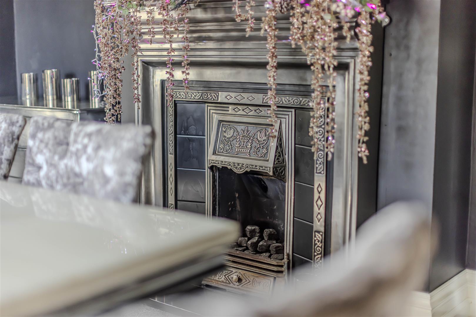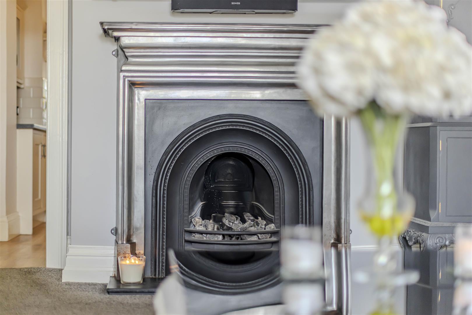 Bedroom Three - 4.52 x 4.23 (14'9" x 13'10" ) - Fitted carpet. Wall mounted radiator. Two wooden sash windows to the front and side aspect. Feature cast-iron fireplace. Ceiling light.