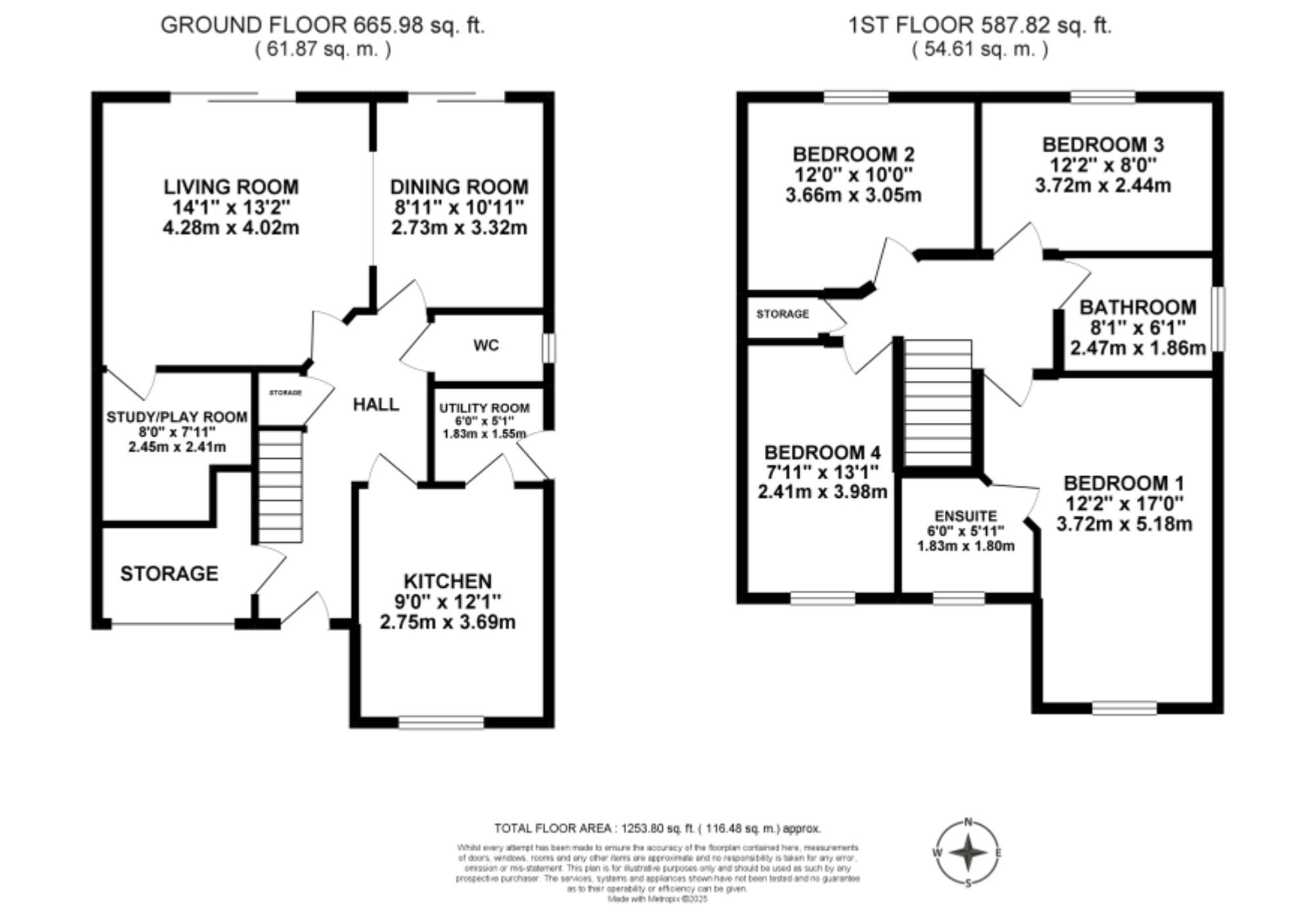 - Four generously sized double bedrooms including a master with its own en-suite shower room, and a further family bathroom with a bath, separate shower, sink, and W/C.