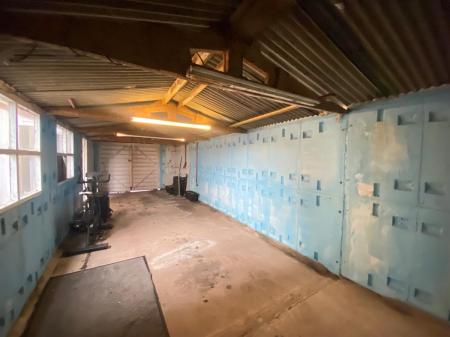 Large detached garage / workshop with double wooden doors to the front, power and light.