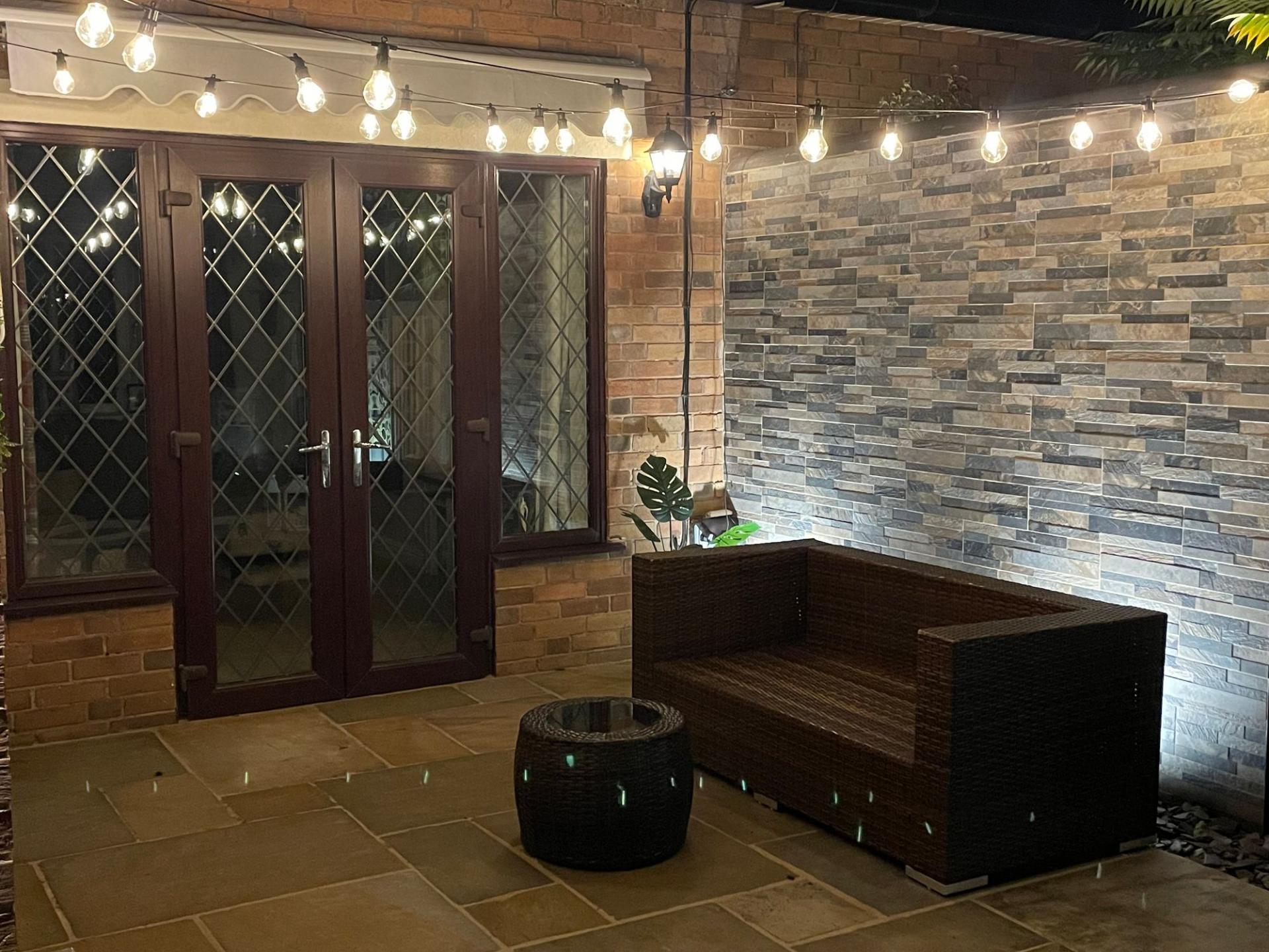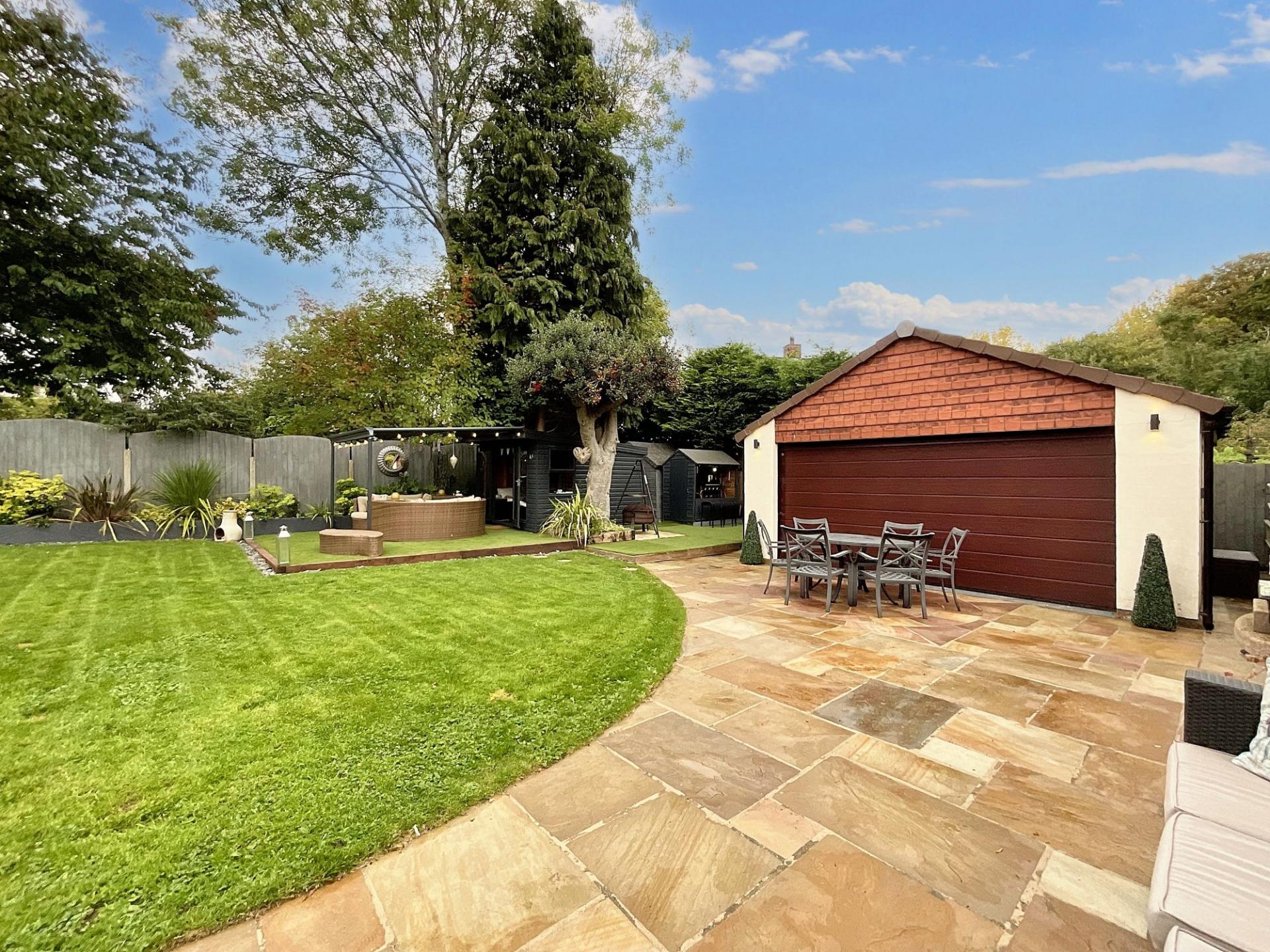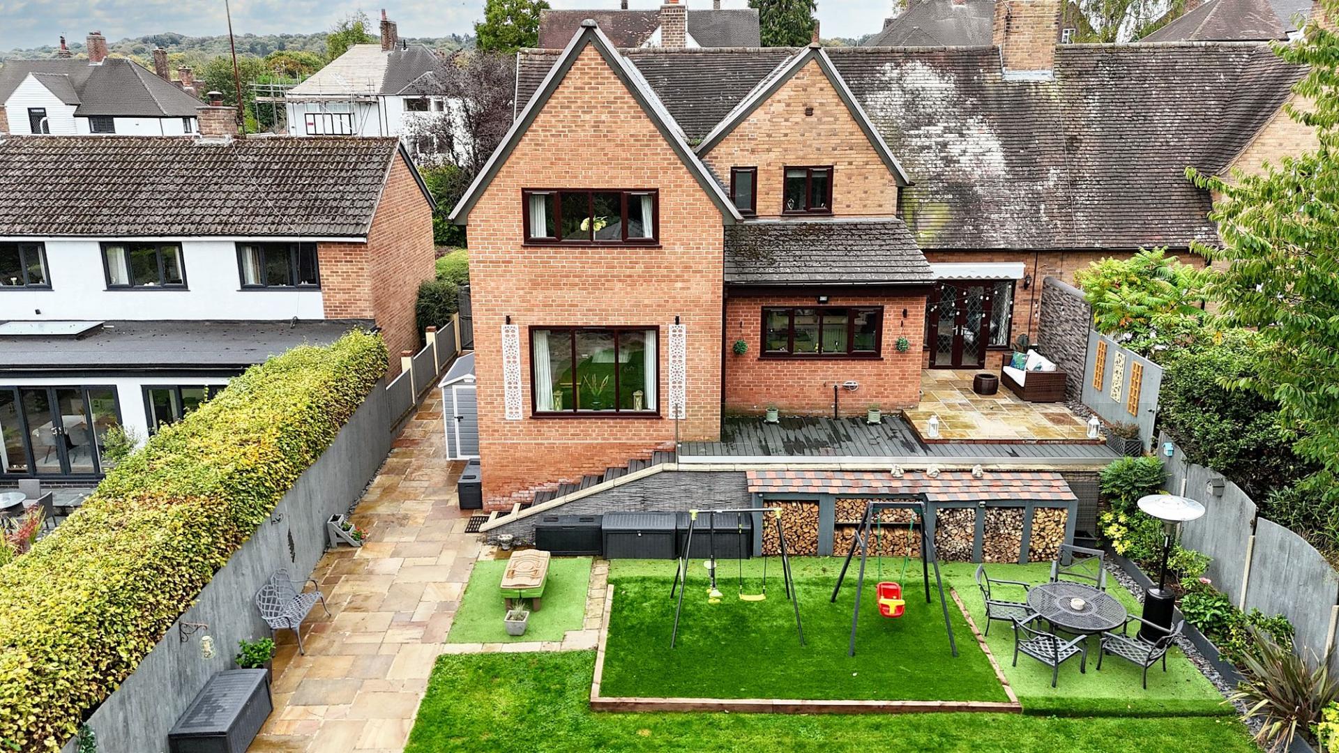 - Beautifully landscaped rear garden with upper tiered patio seating space, glass balustrade and composite decking. Lush grass lawns, bespoke pizza oven, and purpose built summer house.