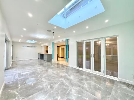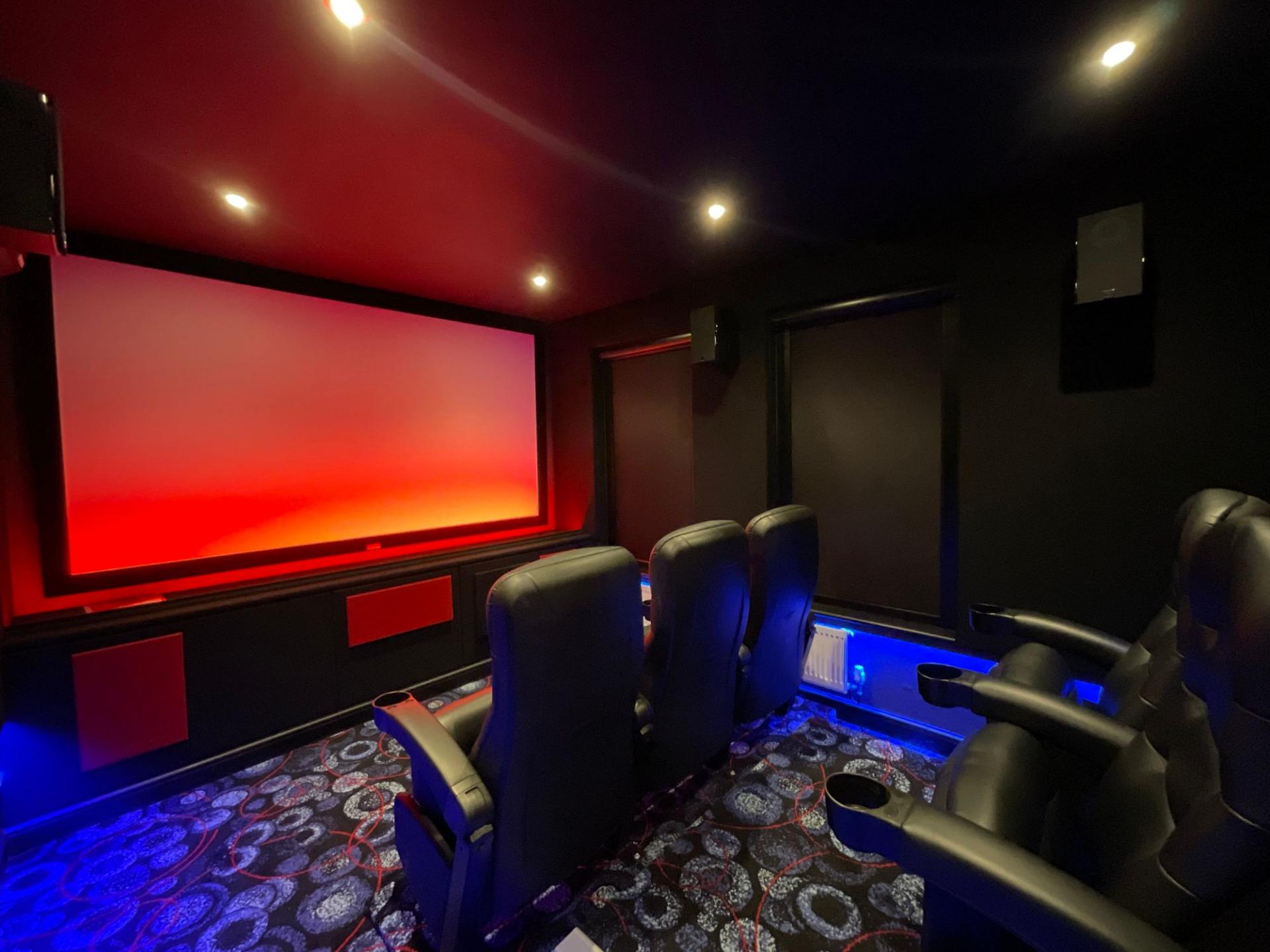 - Extended living/dining to the rear with skylight lanterns with lighting and sound system, kitchen, living room, versatile office/playroom, fully fitted soundproofed cinema room with 5 screening ch...