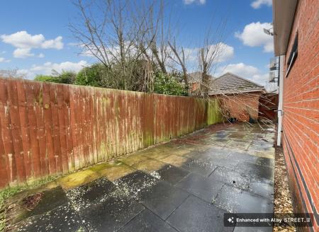 - Direct South-facing rear garden with patio seating space and an expansive grass lawn, to the front a driveway with ample off-road parking, detached double garage with EV charger and AC unit.
