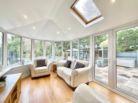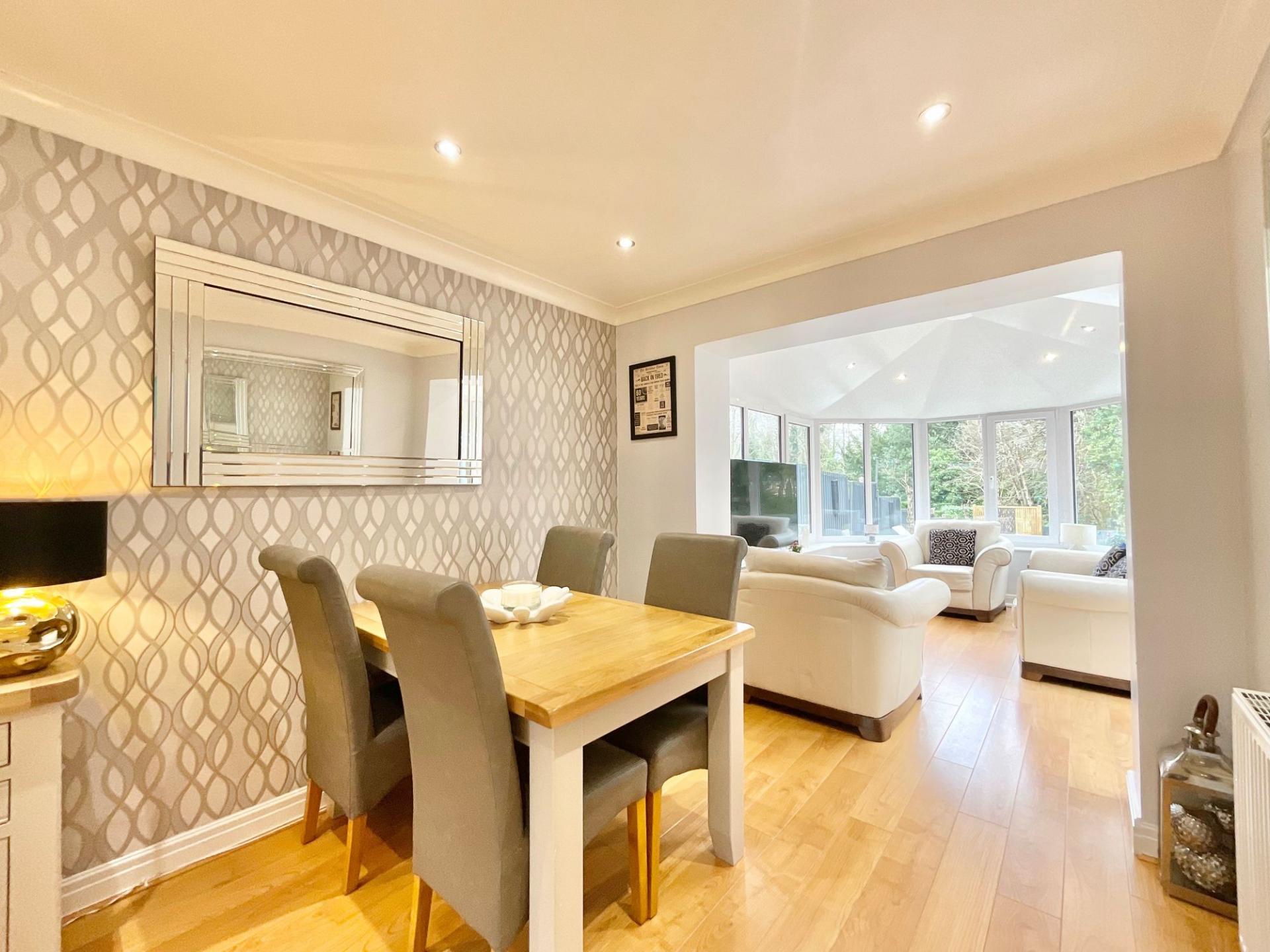 - Bright living room with recently fitted media wall with an electric fire, dining room with seamless open flow into the conservatory, practical U-shaped kitchen, utility and handy W/C.