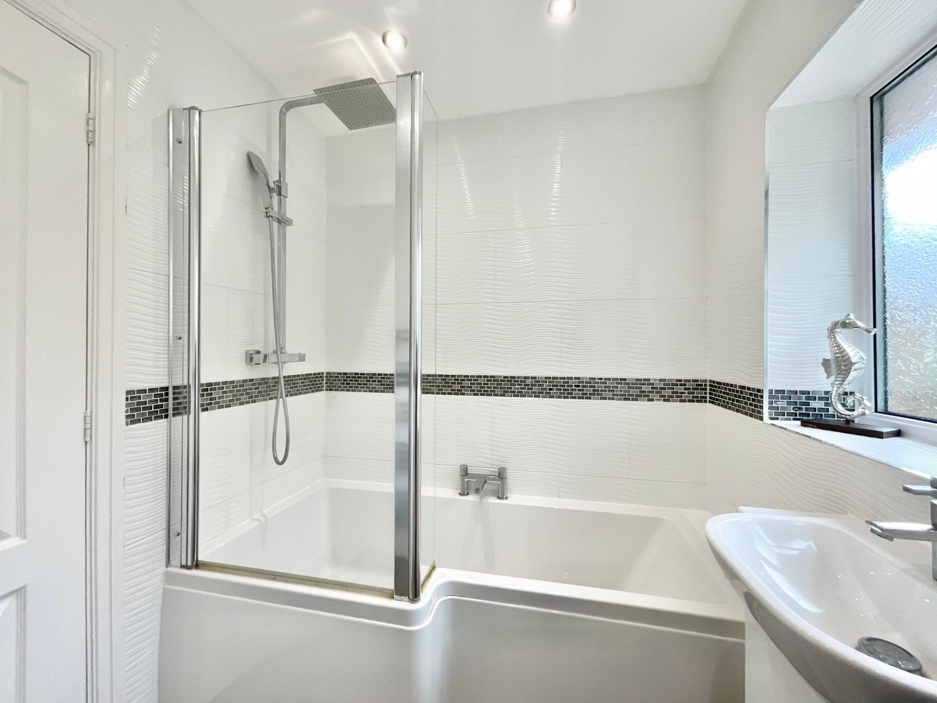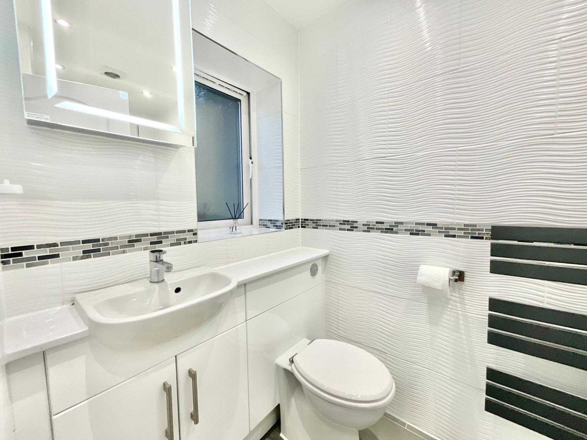 - Four generously sized double bedrooms including a master bedroom with fitted wardrobes and its very own en suite shower room. Family bathroom with bath/rainfall shower duo, sink, and W/C.