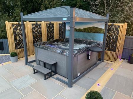 - Landscaped, tiered rear garden with ample patio seating spaces, a pergola, hot tub area, lush artificial lawns and a rear view to the greenery surrounding the Longton Brook.