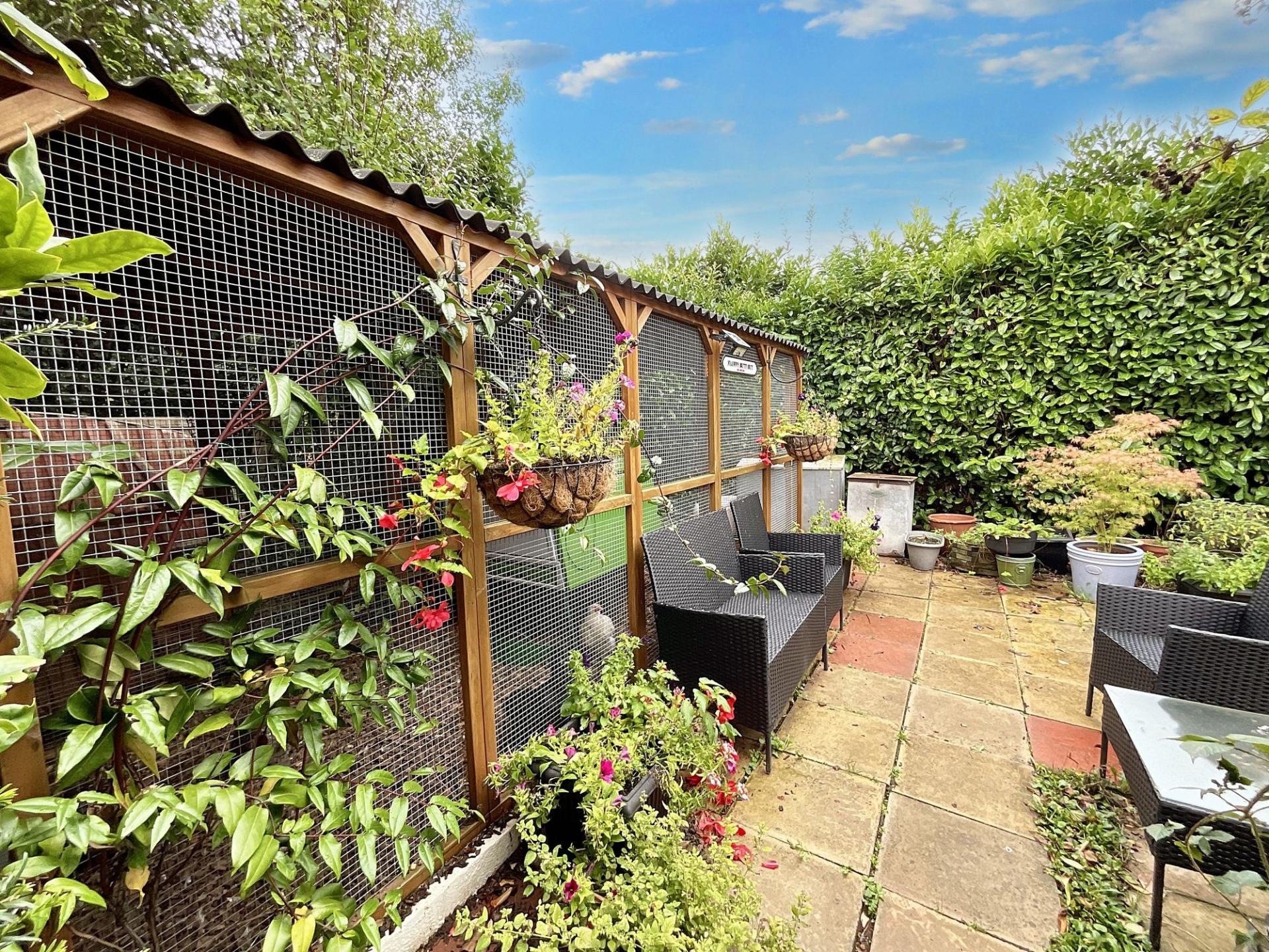 - Sout facing gardens with patio seating space, lush lawns and mature hedges all around the boundary. Plus ample off-road parking to the front and a single garage.