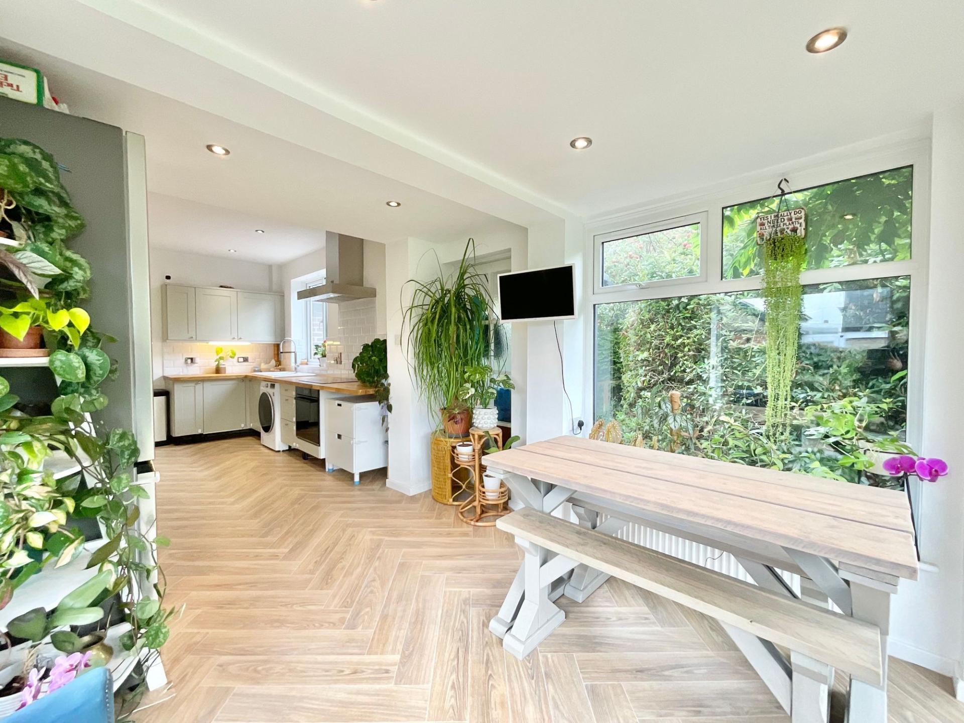 - Bright dining room with feature fire surround and bay window, stunning living room with log burner, open plan flow from the kitchen into a lovely garden room. Plus a handy W/C.