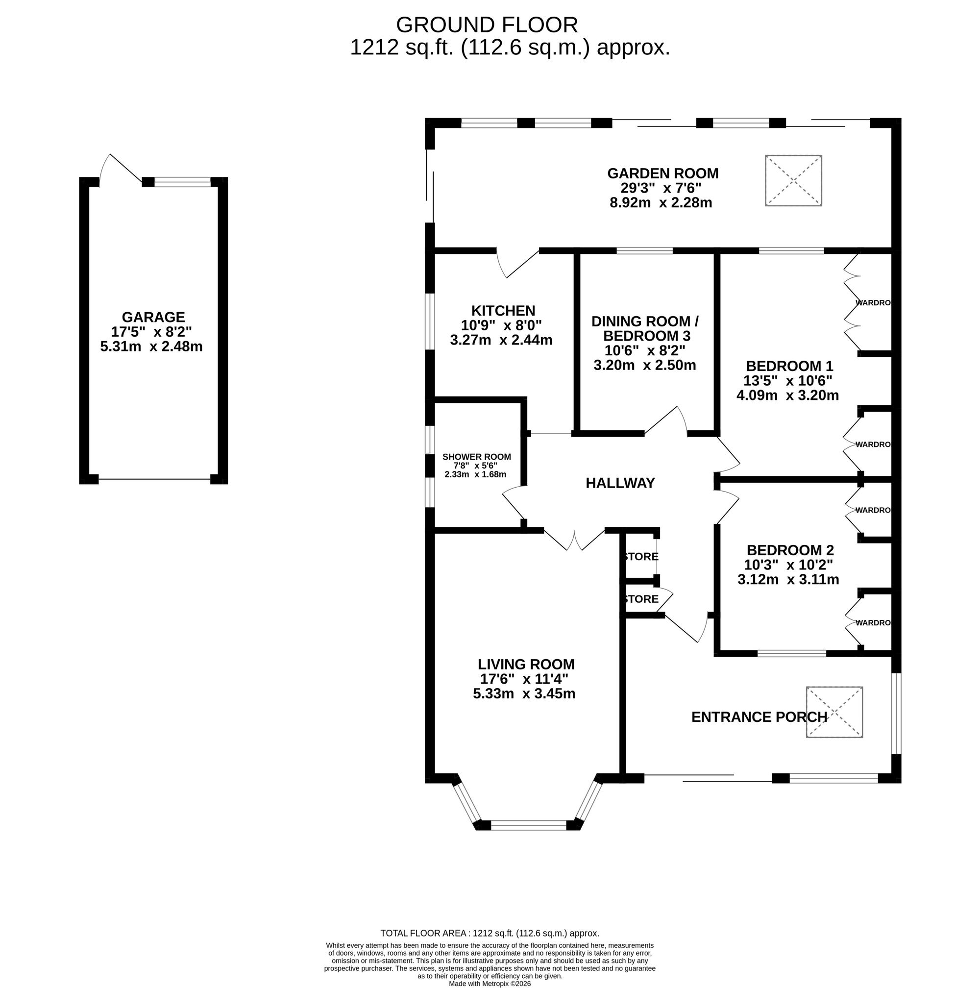- A blank canvas ready for its next owner, with versatile rooms including living room, kitchen, garden room, flexible dining room/bedroom.
