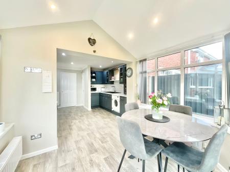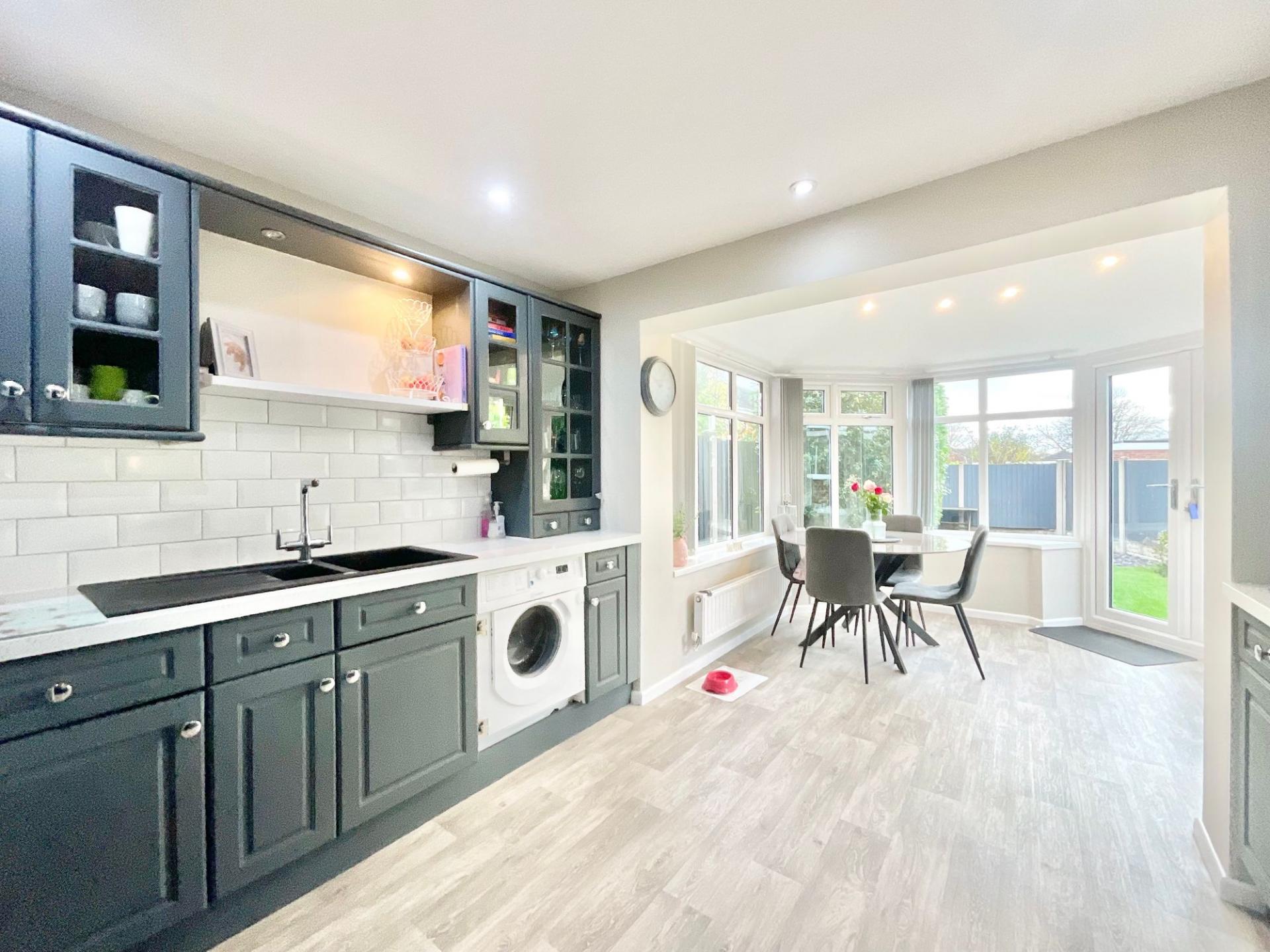 - Welcoming living room with bay window and feature fire surround, open-plan kitchen/conservatory with stylish kitchen, plenty of room for appliances, and easy flow into versatile conservatory.