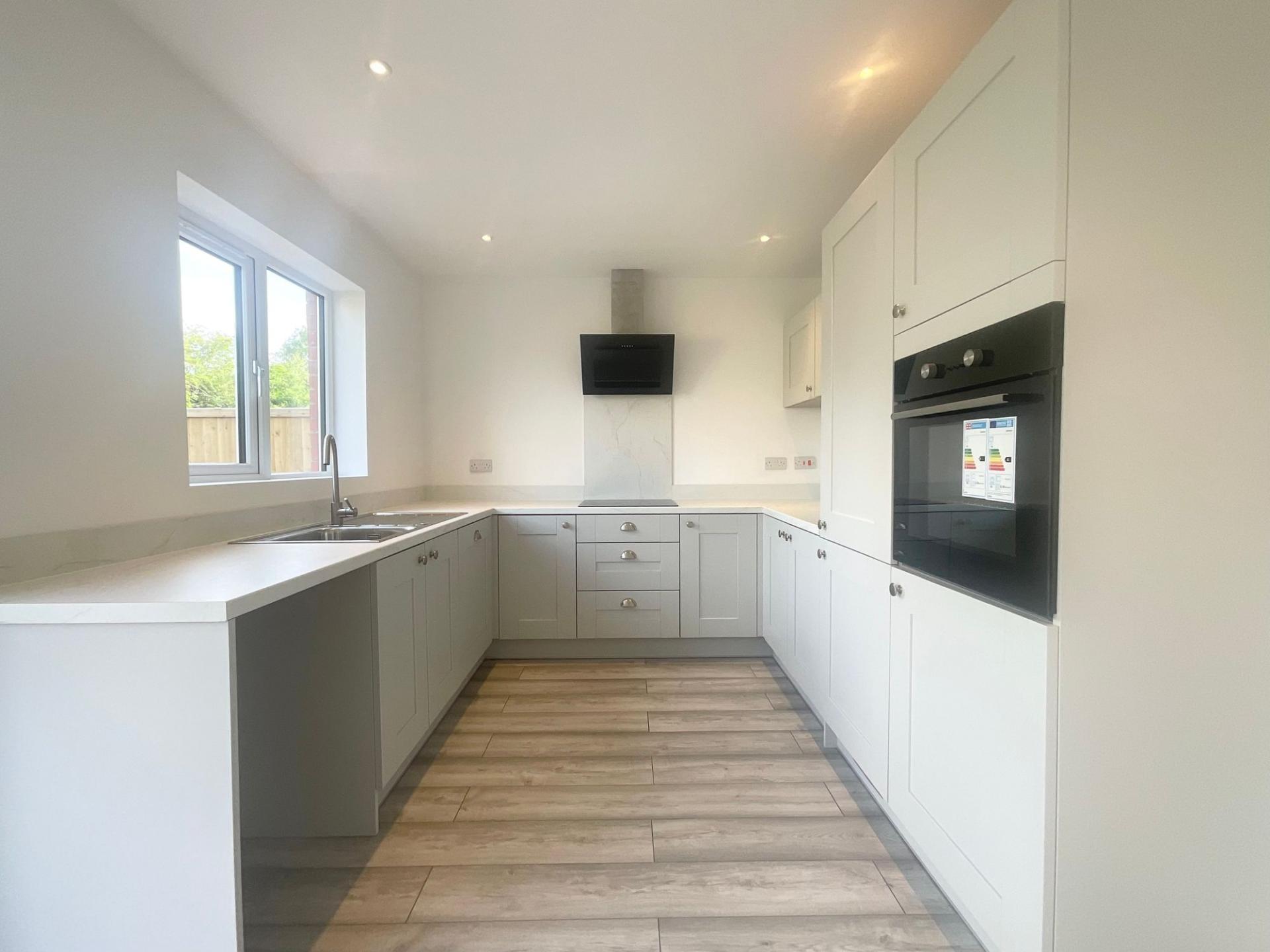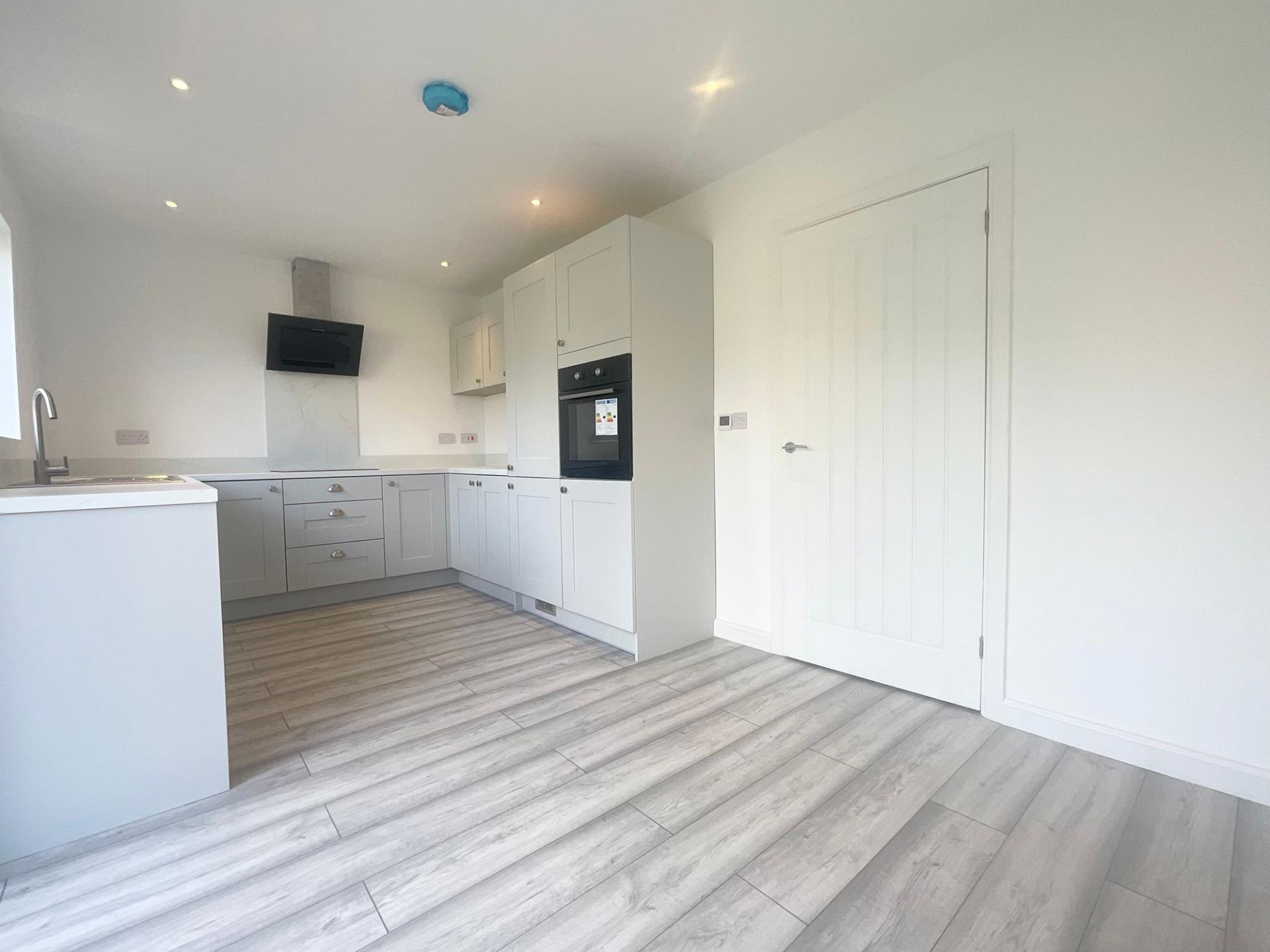 - Kitchen appliances include fridge freezer, dishwasher, oven, induction hob and cooker hood.