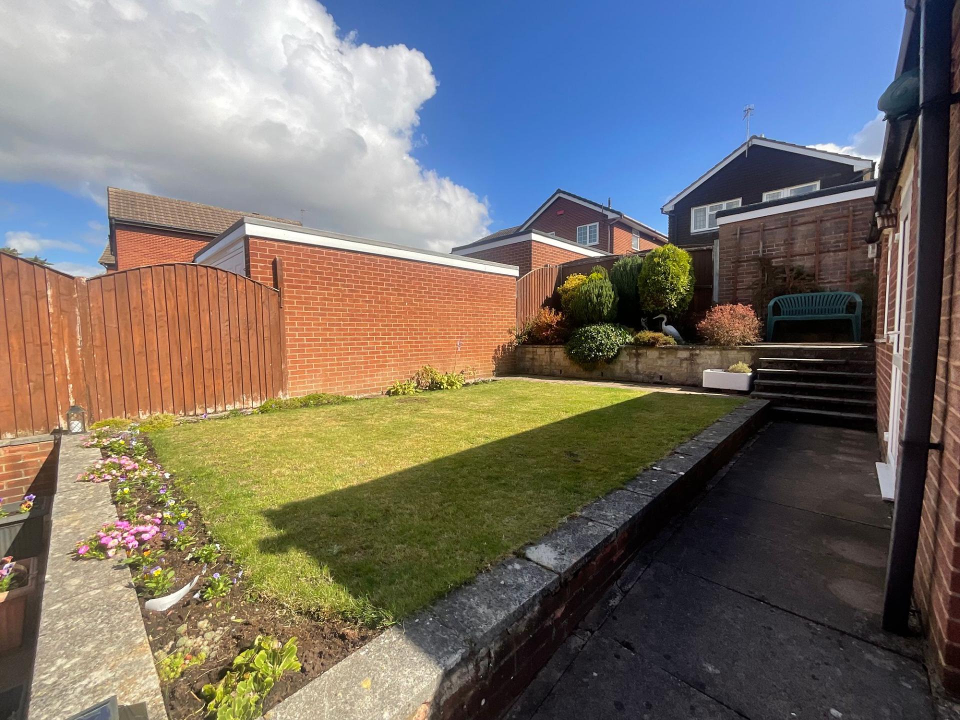 - Well-maintained front garden with a spacious driveway providing off-road parking that continues up the side of the property to a single garage.