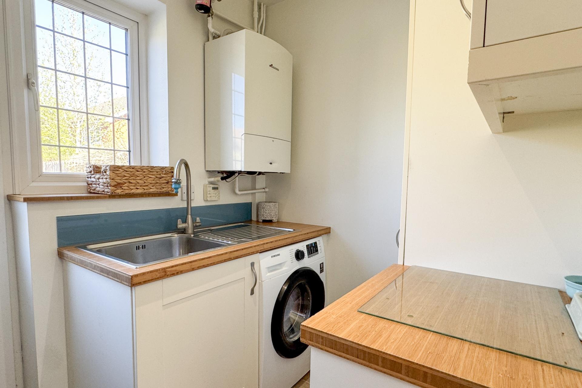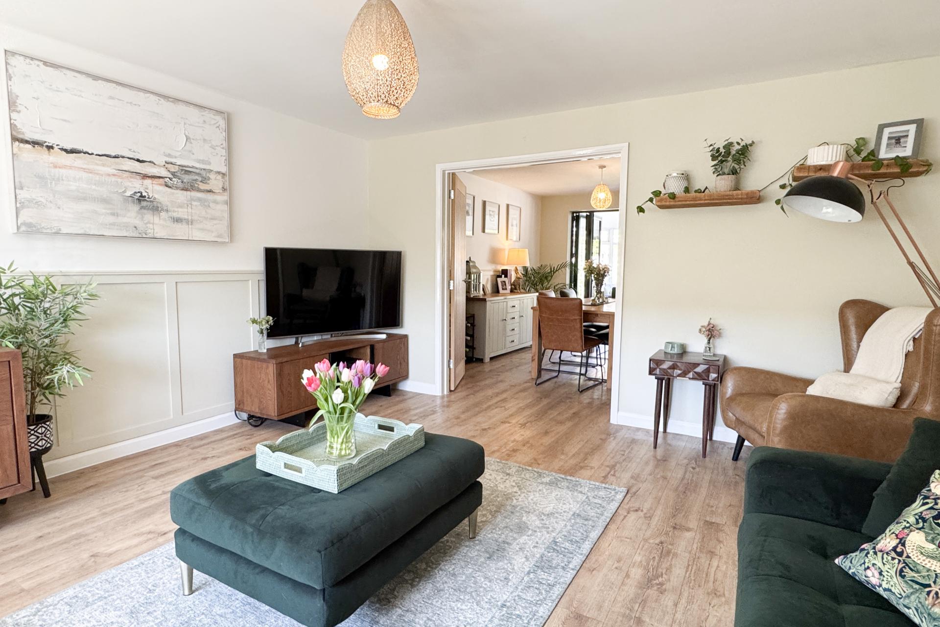 29 The Spiert is a remarkable four-bedroom detached home which seamlessly blends contemporary design, with family-friendly spaces, offering the perfect setting for modern living. Upon entering, you are greeted by a spacious entrance hall, beautifully appointed with Amtico flooring. The expansive living room is bathed in natural light, the living room connects to the dining room, enhancing the flow and providing an airy, open environment. From here, bi-folding doors lead to the conservatory, a versatile space, ideal for use year-round as a sunroom, playroom, or home office. The kitchen is a standout feature, designed with a modern aesthetic and serving as the heart of the home. It boasts a Rangemaster and integrated appliances, including a dishwasher and fridge/freezer, creating a sleek and functional cooking space. A built-in breakfast bar offers an ideal spot for casual meals, while the Karndean flooring adds a touch of sophistication. Adjacent to the kitchen, the utility room provides additional space for both a washing machine and tumble dryer. Completing the ground floor is a practical downstairs cloakroom, adding convenience to the layout. Upstairs, the four spacious bedrooms provide ample room for family living. The master bedroom, complete with built-in wardrobes and a recently updated en suite bathroom. The family bathroom has been fully refurbished to the highest standards, offering a contemporary and stylish setting. The exterior of the home offers a beautifully landscaped garden, complete with a paved patio area ideal for outdoor entertaining and an artificial lawn for easy maintenance. The front of the property features a newly paved driveway with ample parking and access to the garage. This home combines elegance, functionality, and comfort, making it the perfect ready-to-move-in family home.