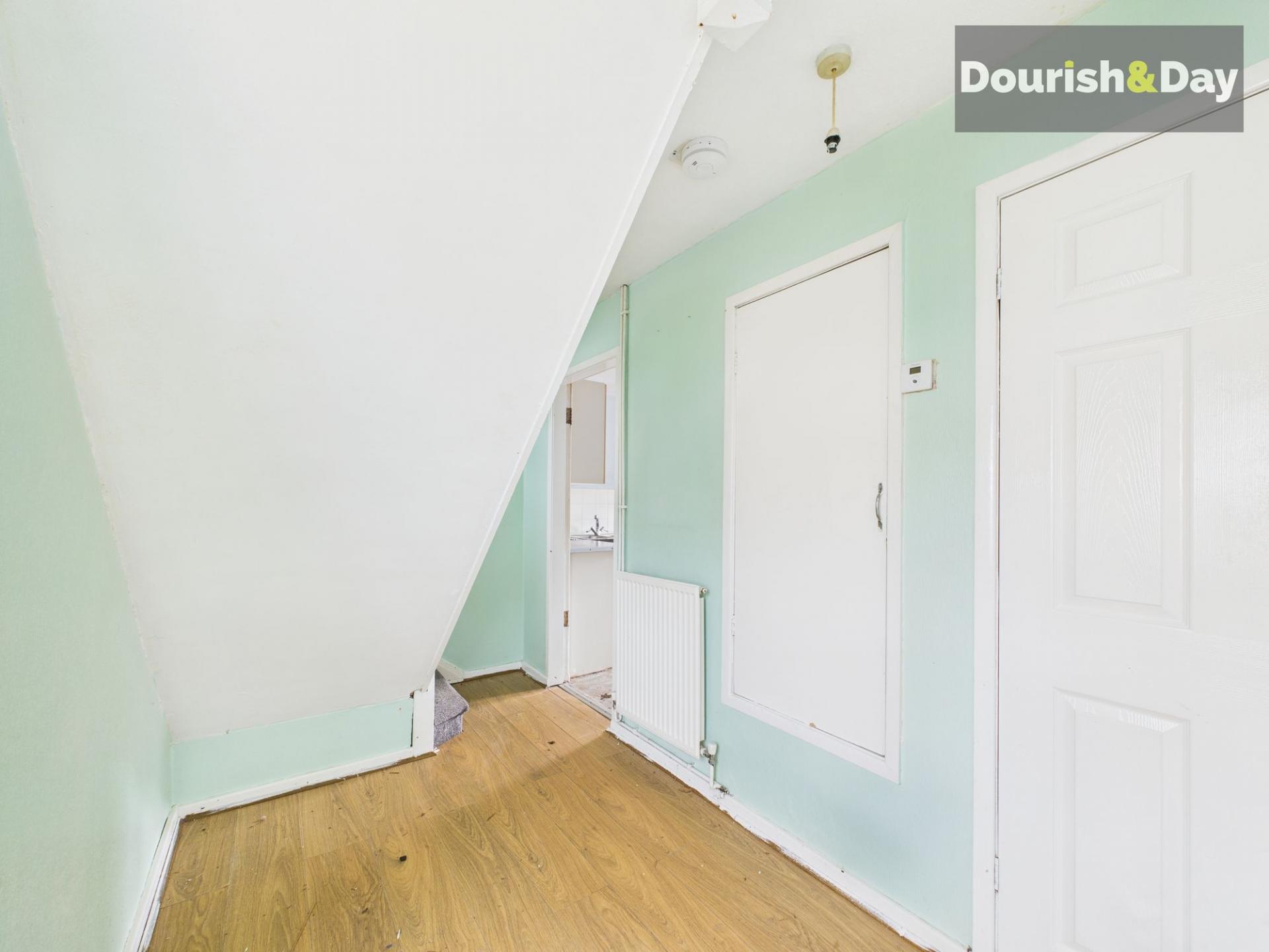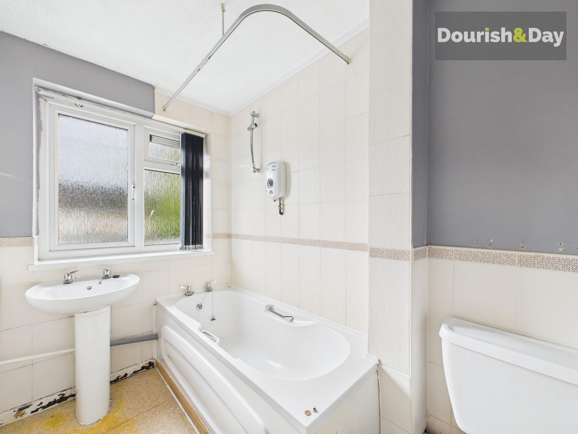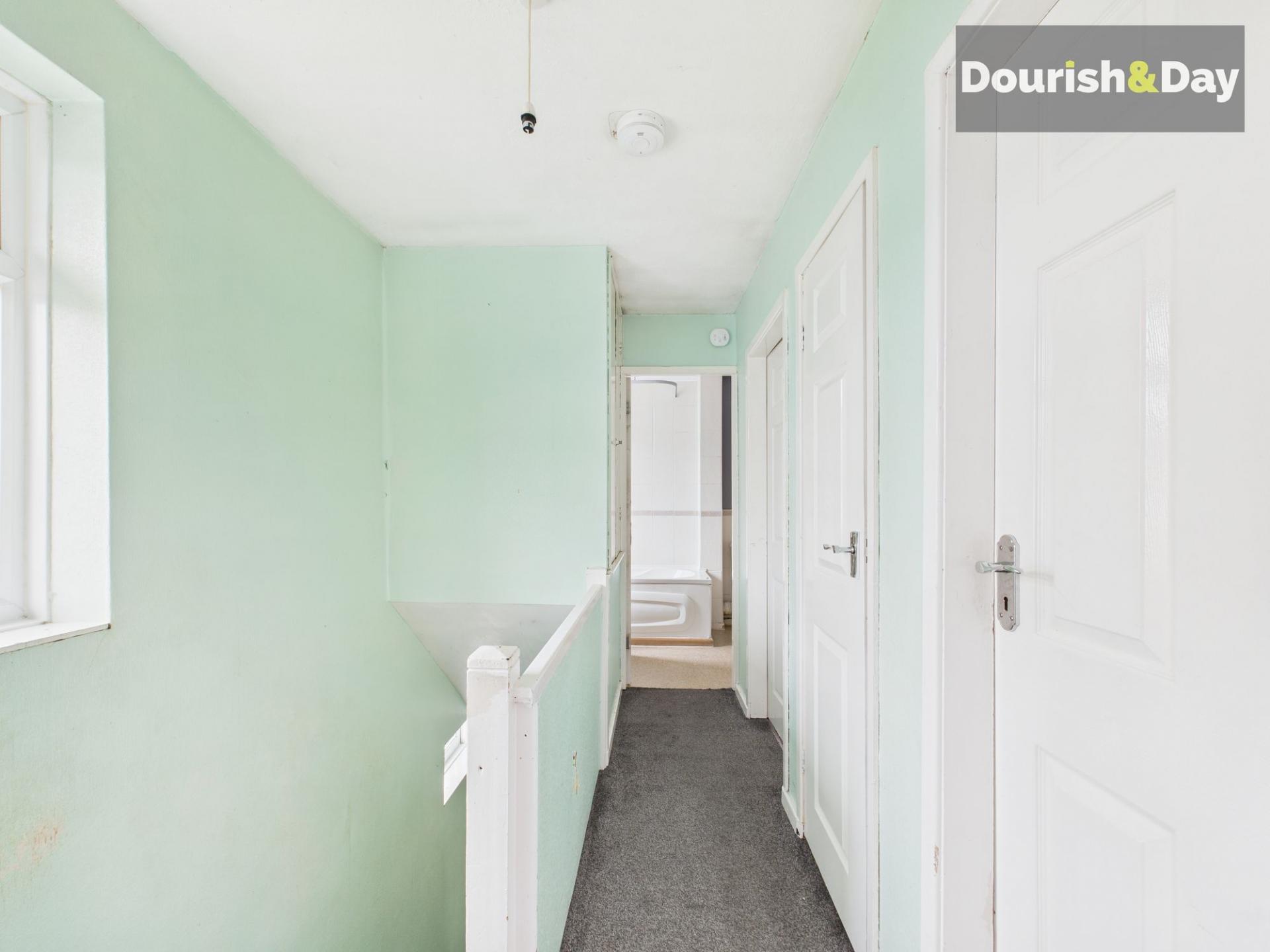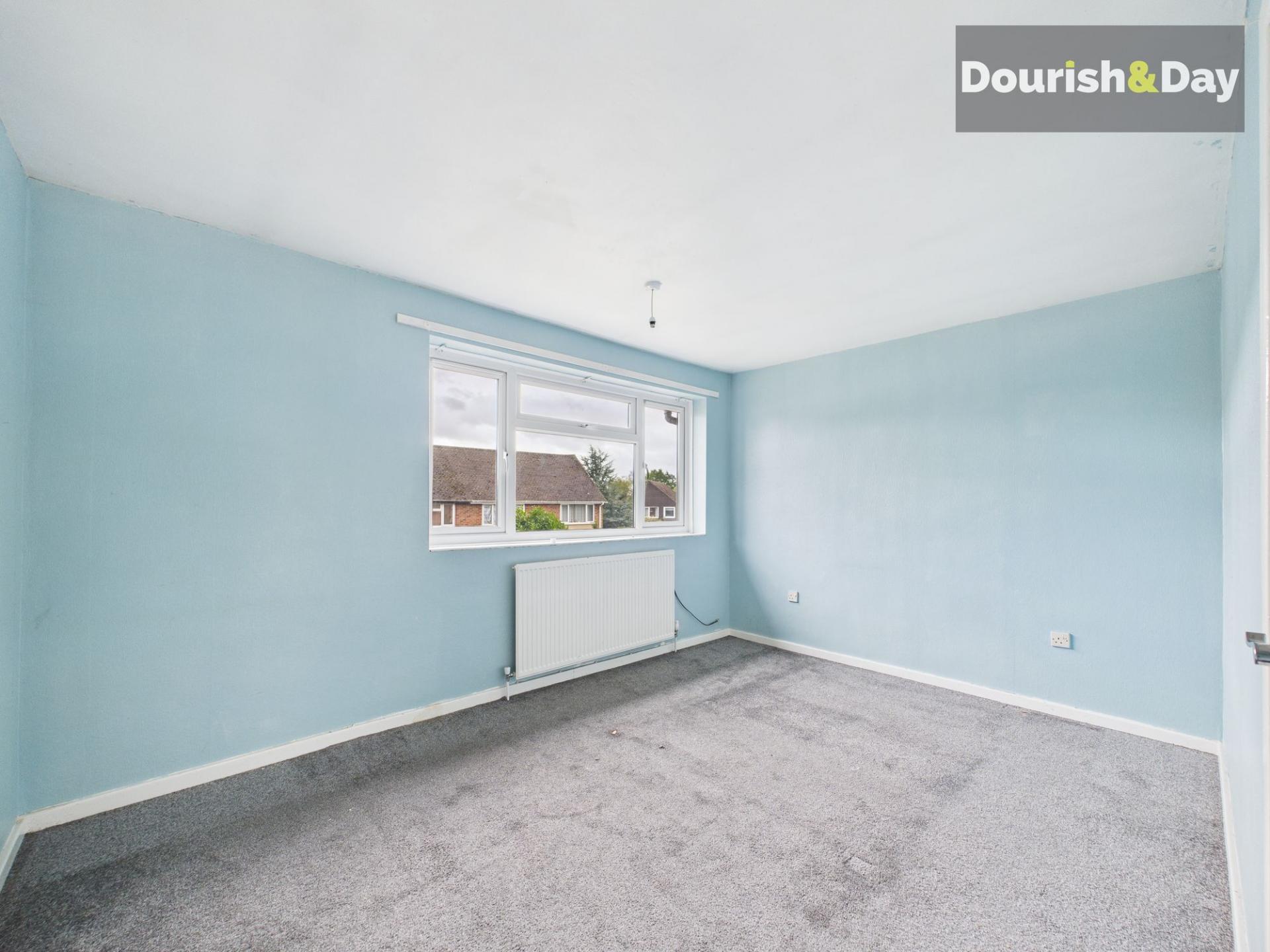 Inside, a spacious hallway welcomes you with a large cloakroom and guest WC. The standout feature is the bright and airy L-shaped lounge/dining room with dual aspect windows, offering plenty of natural light and flexible living space. The kitchen, while in need of modernisation, is a generous and practical space with ample counter surfaces and room for a full-size fridge freezer. It flows seamlessly from both the lounge and hallway, with the added benefit of direct access to the rear garden. Upstairs, the landing offers excellent storage with both a deep cupboard and an airing cupboard, while all three double bedrooms include fitted wardrobes. The principal bedroom has both single and double wardrobes with views over the garden, the second is front-facing and generously sized, and the third rear-facing bedroom includes a built-in wardrobe. A family bathroom with pedestal sink and shower over bath completes the first floor.