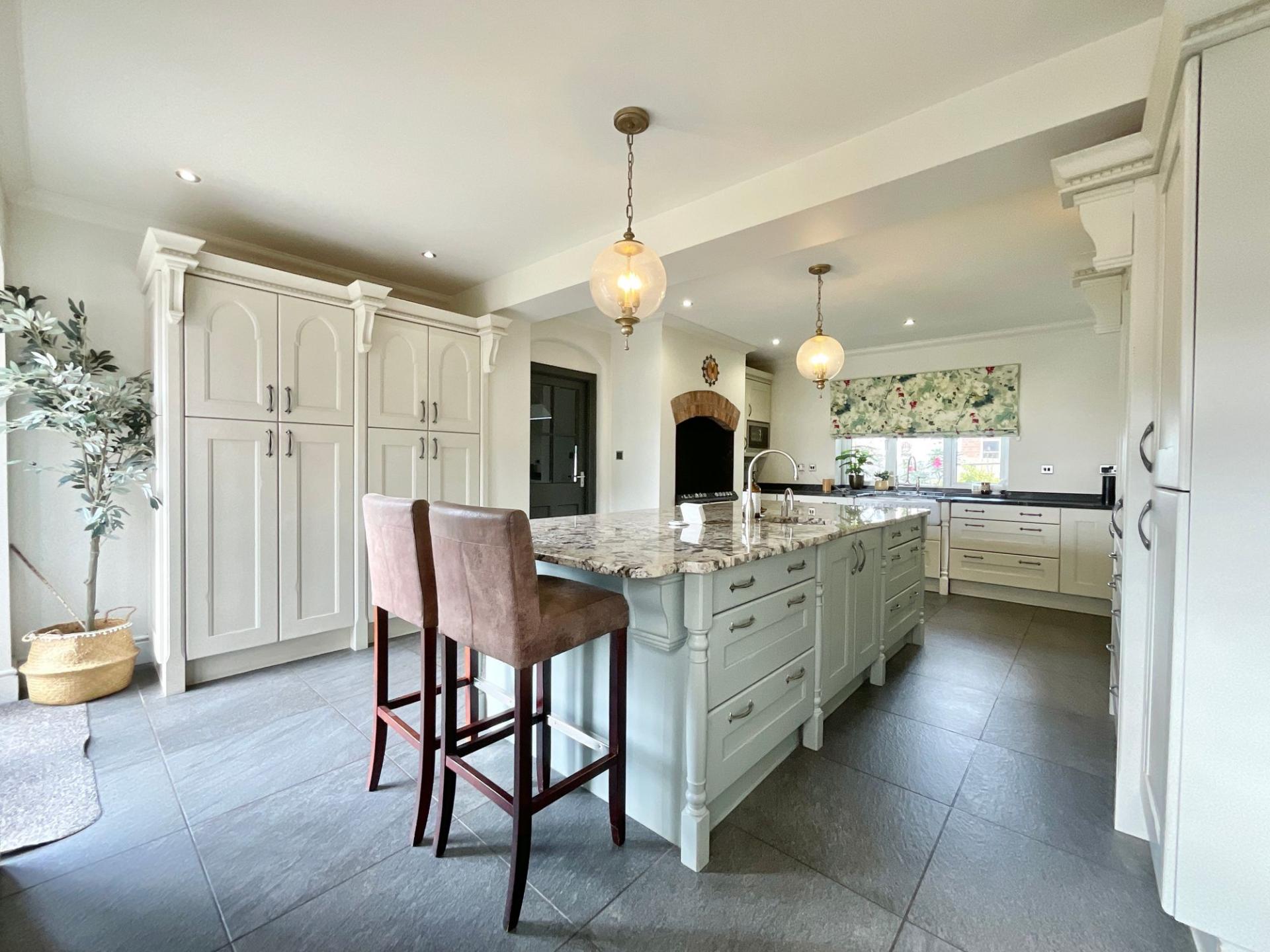 - Convenience meets practicality with a generous driveway accommodating multiple vehicles and a detached triple garage