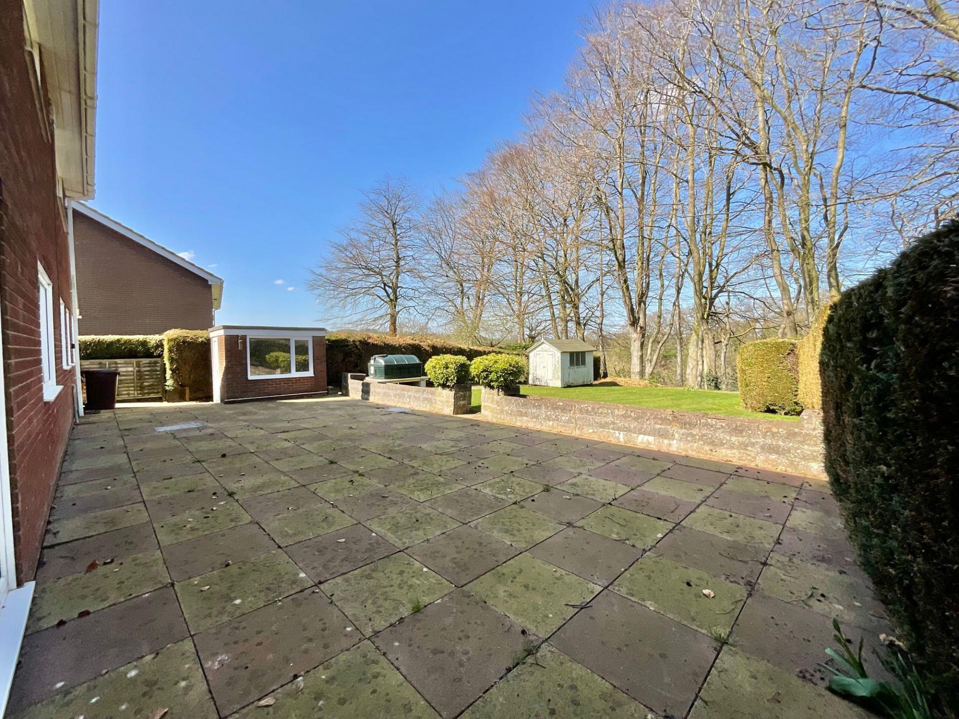 - The rear garden offers a perfect space for hosting friends and family with a patio seating space and a lush grass lawn.