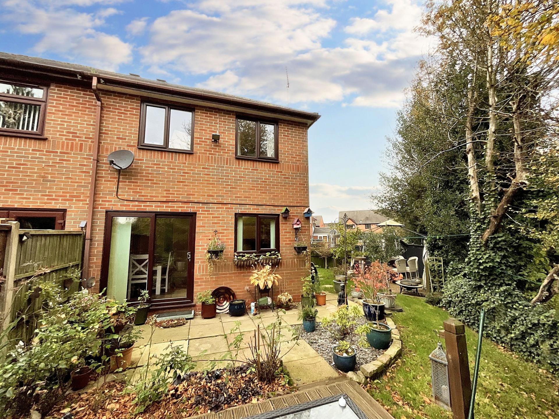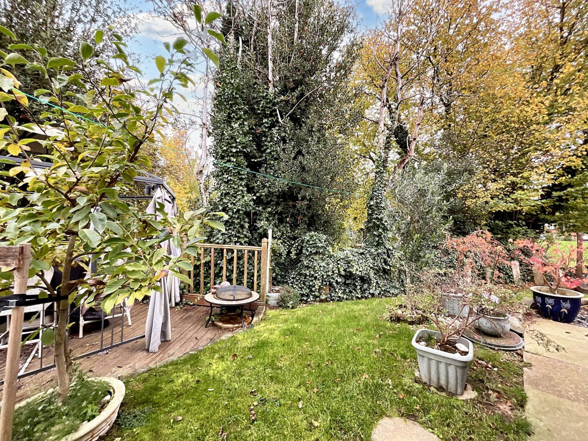 - Corner East-facing garden with patio and decked seating areas and grass lawn. Low maintenance garden to the front and a driveway with off-road parking.