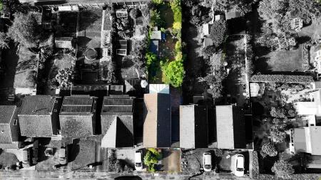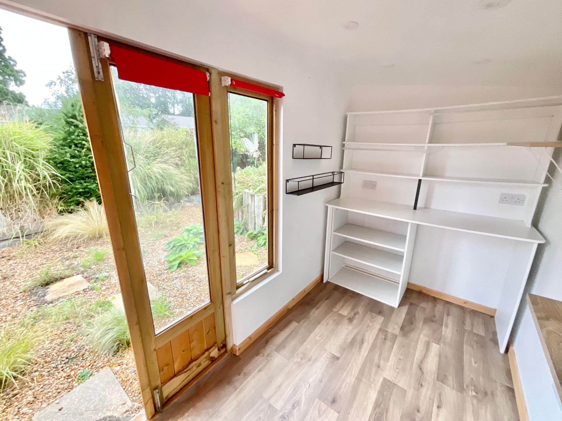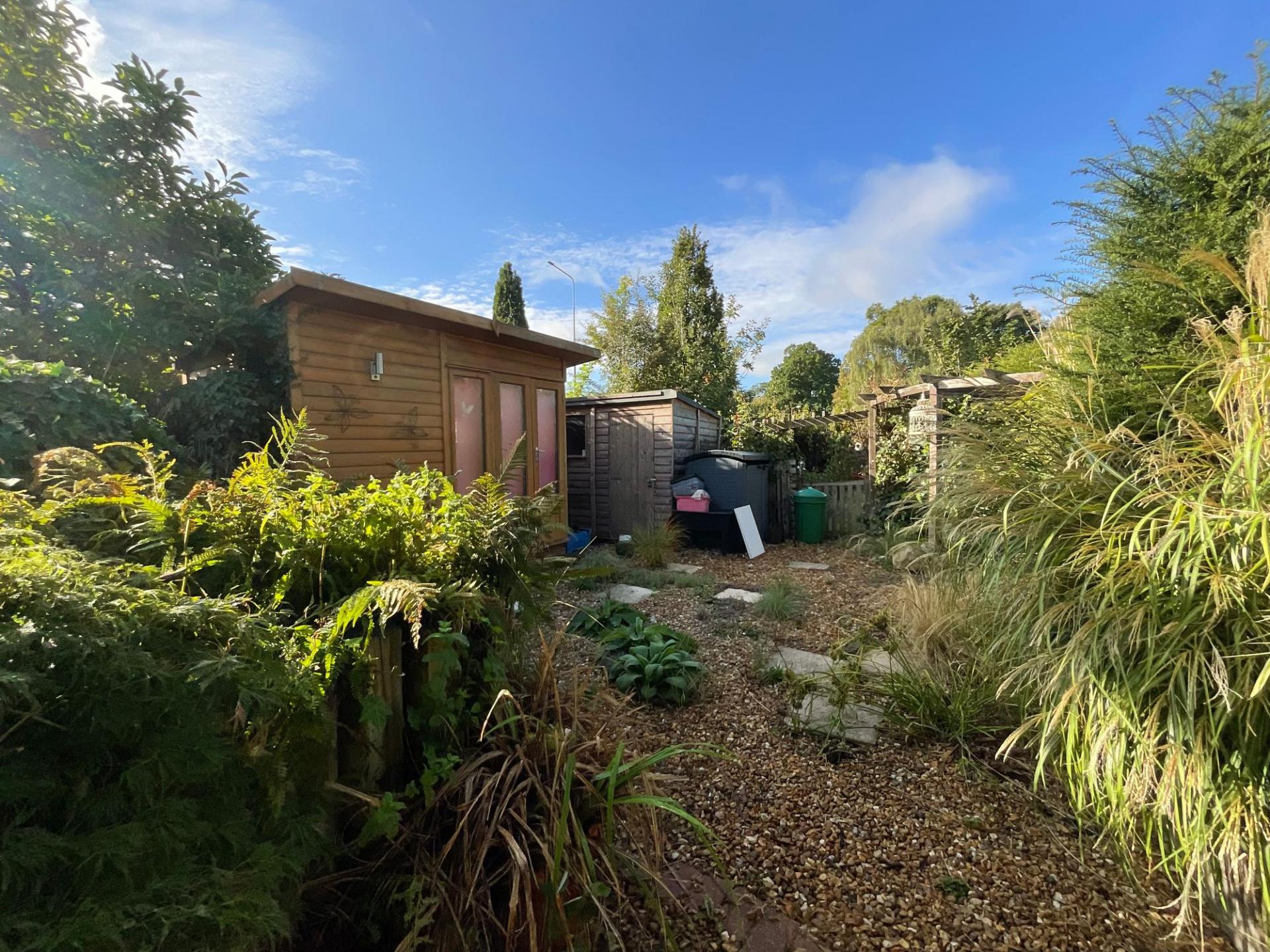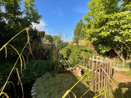 - South-West facing garden with patio seating space, mature shrubberies, a pond, and an outdoor studio.