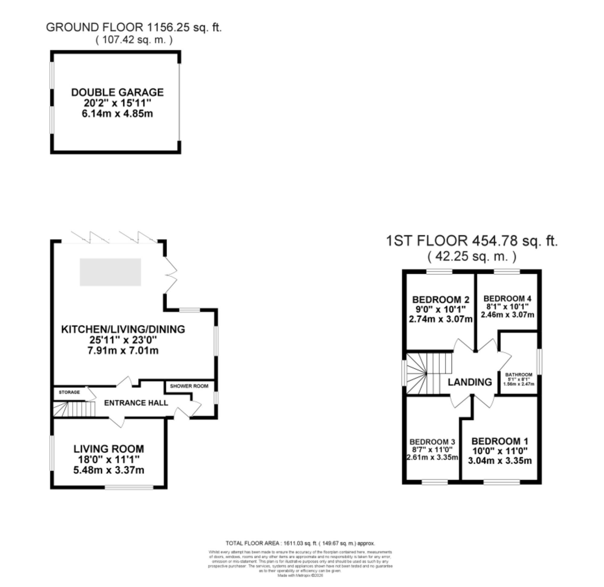 - Driveway to the rear with ample off-road parking for several vehicles, leading to a double garage, ideal for secure storage, a gym, or workshop/office space.
