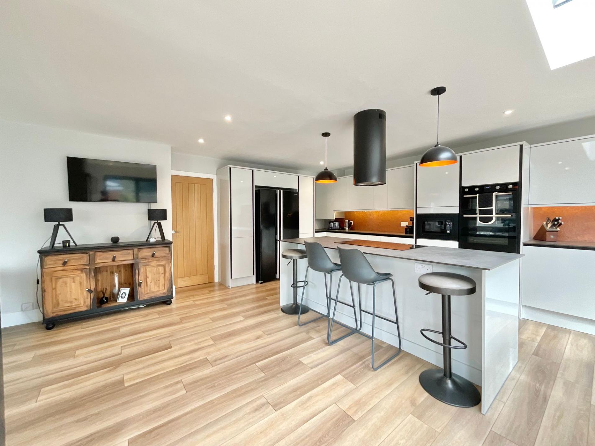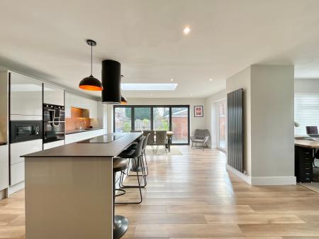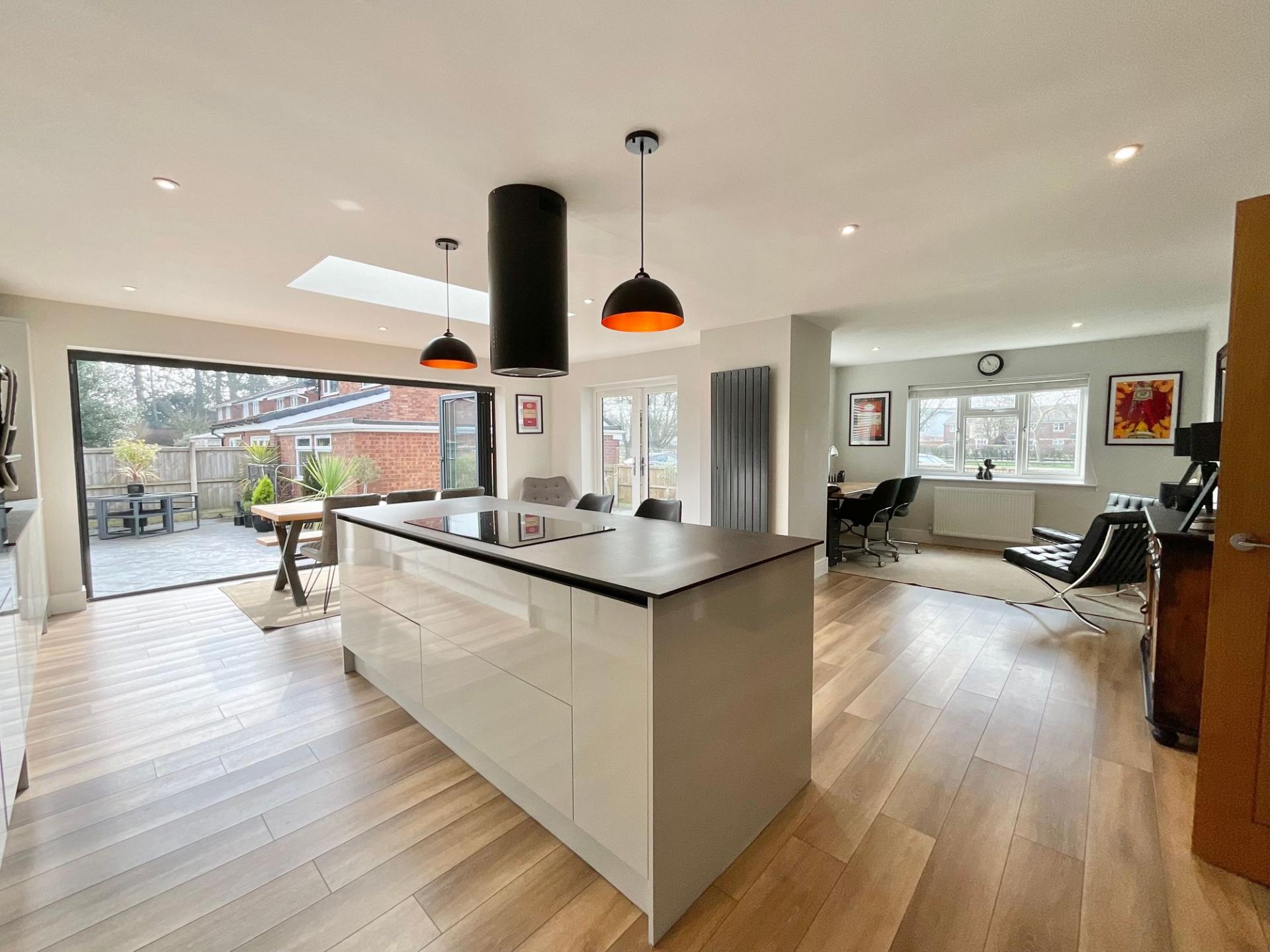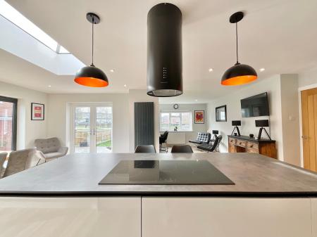 - Open-plan kitchen/living/dining space with integrated kitchen offering a dishwasher, washing machine, microwave, an island with breakfast bar and ceramic induction hob, sky lantern and bifold door...