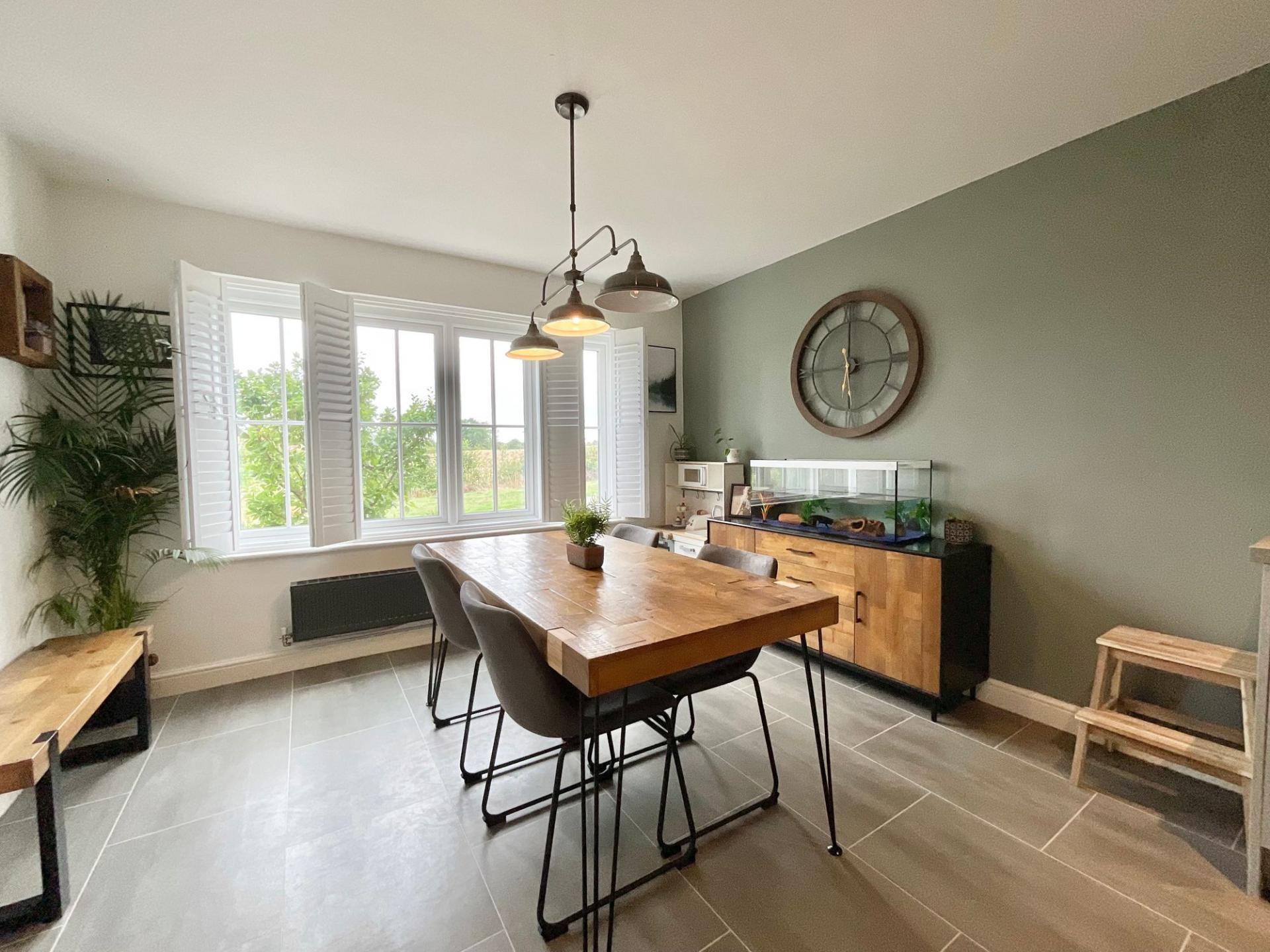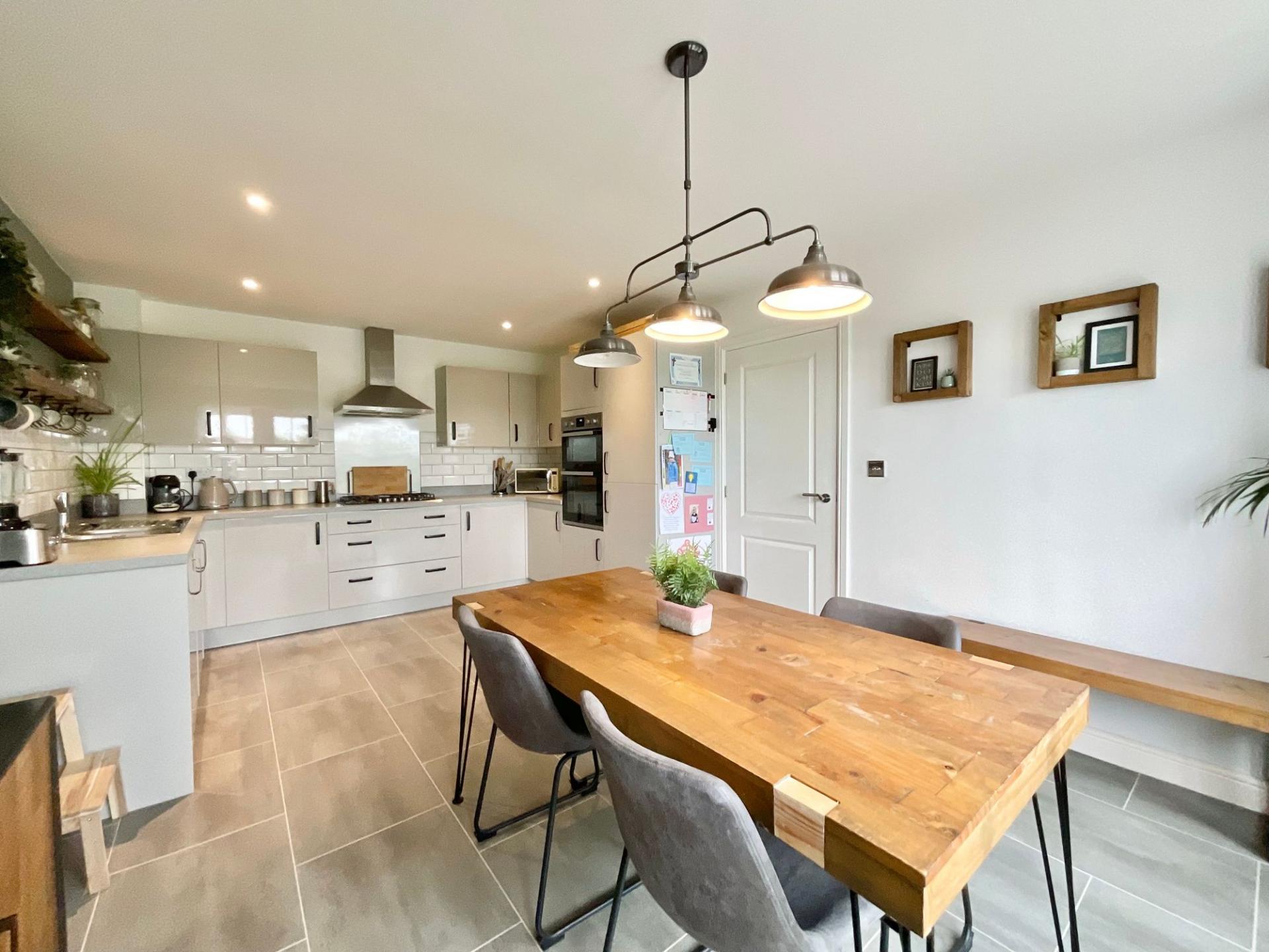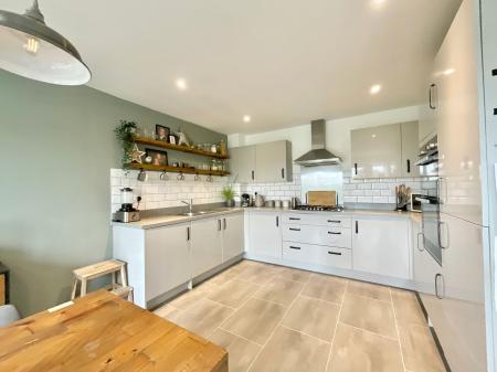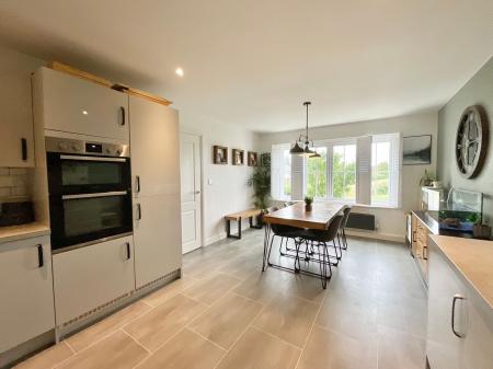 - Open-plan kitchen/diner with practical U-shaped kitchen, integrated appliances and plenty of room for dining. The living room leads though ladder-style doors into a bright extended family room.