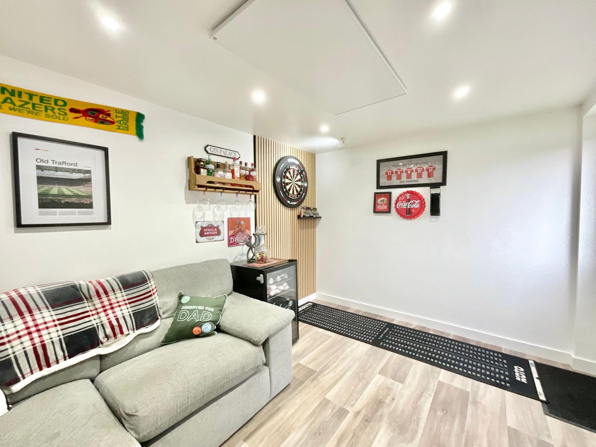- Converted garage with bar/games room and separate store to the front. While the driveway provides ample off-road parking.