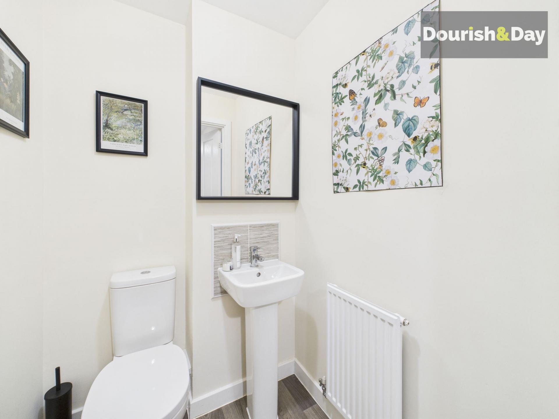 The property features a welcoming entrance hall leading into a bright and spacious living room. An inner lobby offers a guest WC and useful storage cupboard. To the rear, a contemporary kitchen-diner provides a sleek and functional space for everyday living and entertaining. Upstairs, there are two well-proportioned bedrooms and a stylish family bathroom. Outside, the home benefits from an enclosed rear garden and off-road parking to the front.