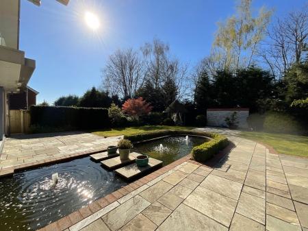 - Westerly facing rear garden complete with an Indian stone patio, linear pond, and summer house, ideal for entertaining or unwinding.