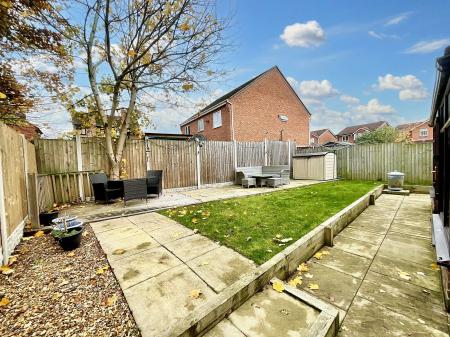 - A front garden with mature shrubbery, and a driveway with a carport, aswell as a rear garden with lawn, decking, and a patio.