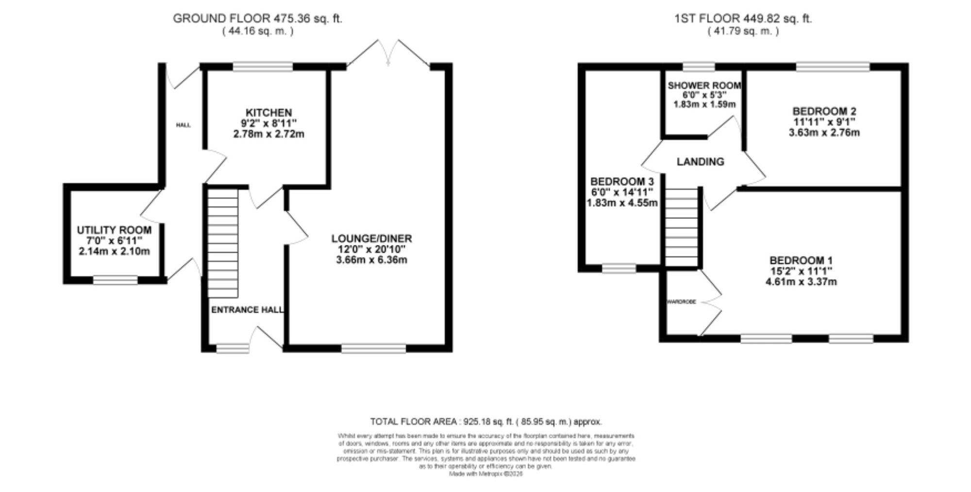 - Open-plan lounge/diner with a feature fire surround and glazed French doors leading to the rear. Updated kitchen with practical U-shaped shaker-style cabinetry and a separate utility space.