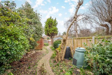 Outside, the property enjoys an enclosed, level and landscaped rear garden with gated access from the hard standing providing off road parking. A sweeping block paved pathway leads through established shrub borders to a patio and seating area, ideal for outdoor relaxation. The garden also offers space for two garden sheds and benefits from outside lighting and a cold water tap.