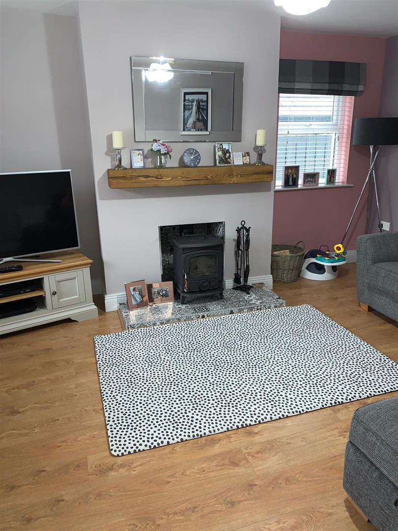 5.18m x 3.63m wp (17' x 11'11" wp) - Having multi fuel stove set on tiled hearth, laminated wooden floor.