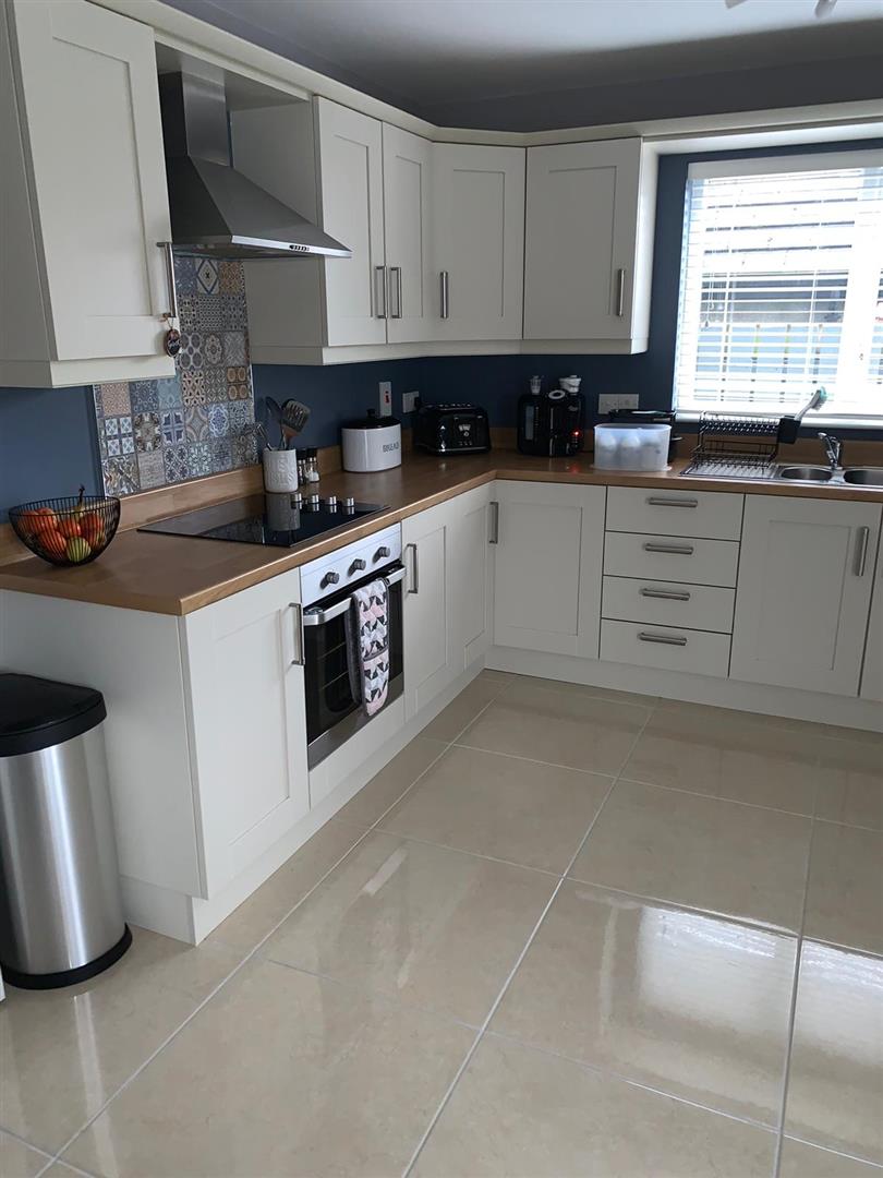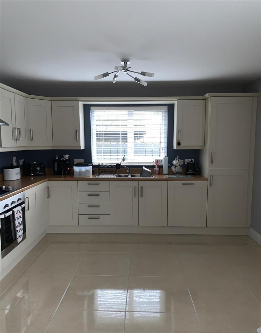 5.79m x 3.66m wp (19' x 12' wp) - Having range of eye and low level units, matching pelmet over window, 1 1/2 bowl stainless steel sink unit with mixer taps, hob and underoven, integrated fridge / freezer and dishwasher, tiled floor, ample dining space with French doors leading to rear.