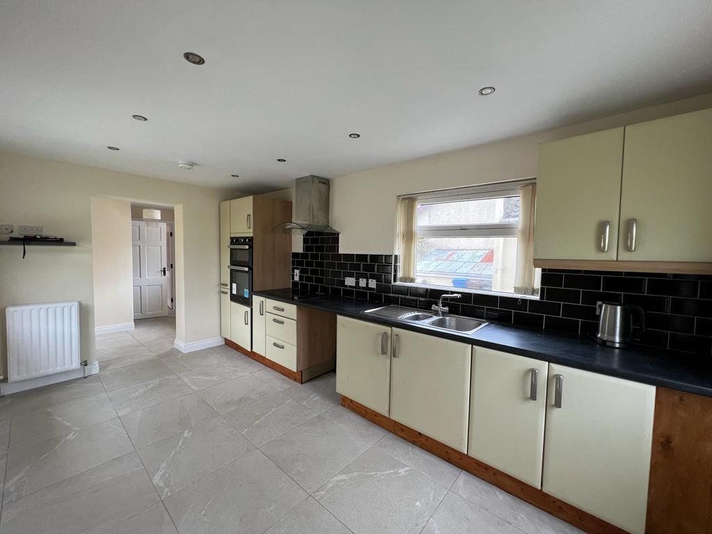 4.65m x 2.69m (15'3" x 8'10") - Having eye and low level units, tiling between units, 1 1/2 bowl stainless steel sink unit with mixer taps, hob, double oven, stainless steel extractor hood, tiled floor.