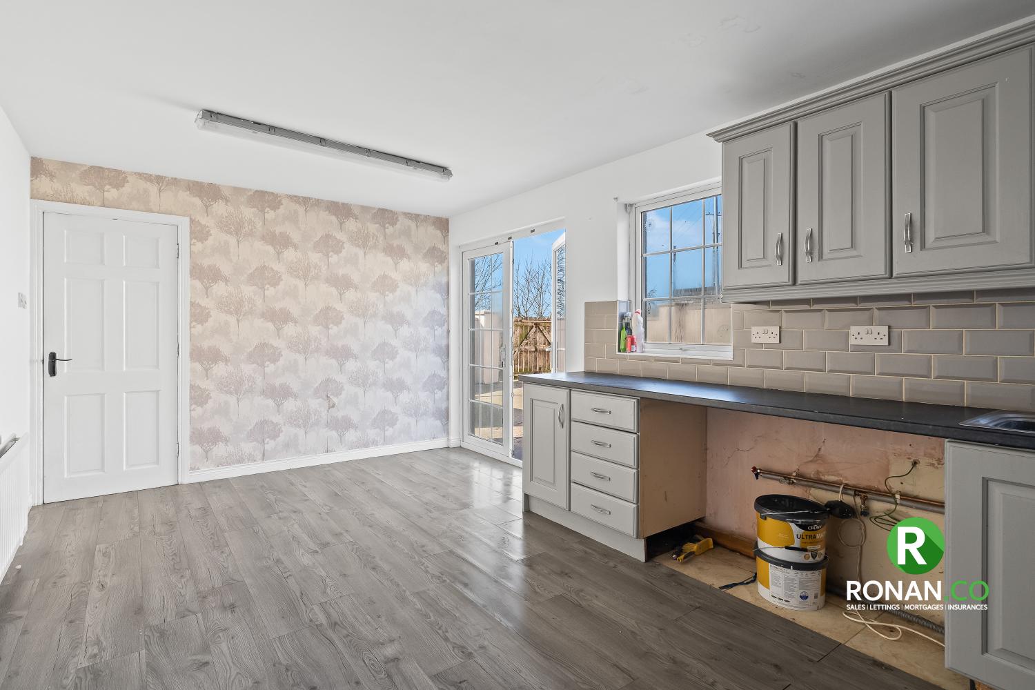 Laminate Floor, Partially Tiled Walls, Plumbed for Washing Machine & Dishwasher, Patio Doors, Double Radiator