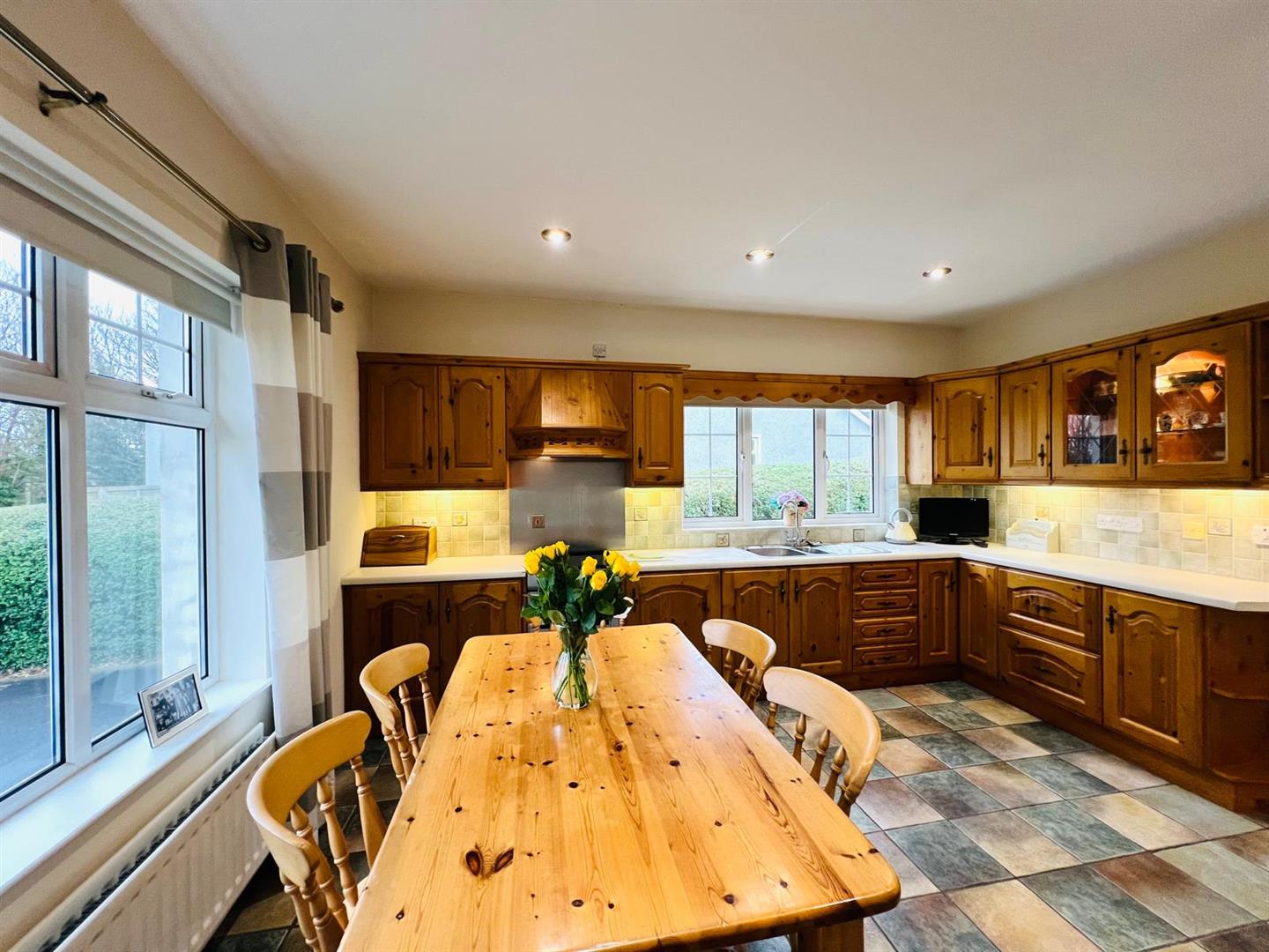 4.47m x 3.94m (14'8" x 12'11") - Having excellent range of eye and low level units, glazed display cupboards, tiling between units, 1 1/2 bowl stainless steel sink unit with mixer taps, wired for cooker, extractor hood, ample dining space, tiled floor.