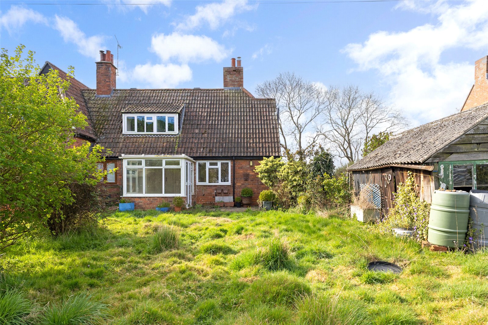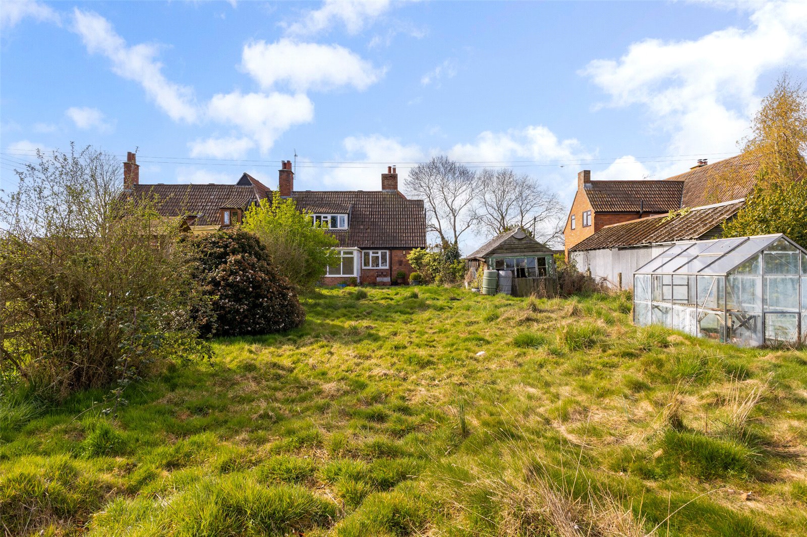 The property is set back from the road and approached via a gated front garden which is mainly laid to lawn with the potential to add a driveway for secure off-road parking. The rear garden is substantial and is mainly laid to lawn with mature shrubs, borders and fruit trees with a useful timber garage and greenhouse.
